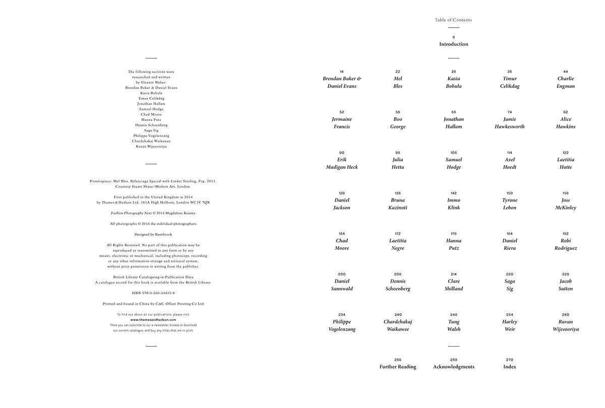 From Axel Hoedt's bold graphic experimentation and fascination with traditional costume, and Erik Madigan Heck's painterly use of colour and natural light, to Daniel Jackson's exploitation of movement and dynamic shape or Hanna Putz's cool neutral aesthetic, the photographs brought together under Magdalene Keaney's curation are diverse, innnovative and utterly memorable.