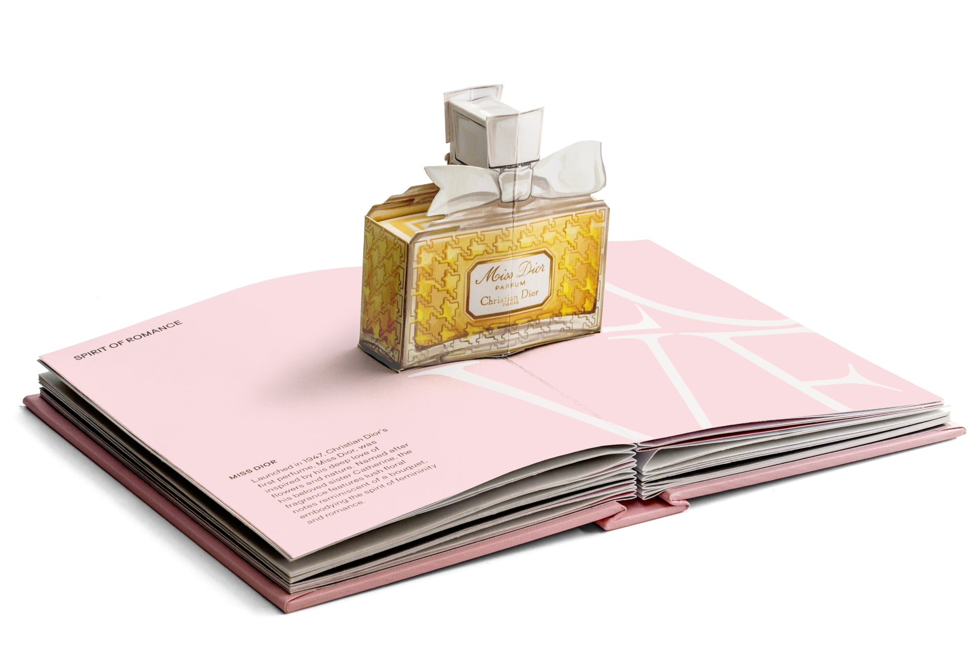Enter Dior's dreamlike world through immersive pop-ups that celebrate the New Look, couture craft, and house icons-from couture classics to beauty legends. Each spread is artfully crafted to offer a tactile, spatial perspective on the house's treasured icons and evolution.