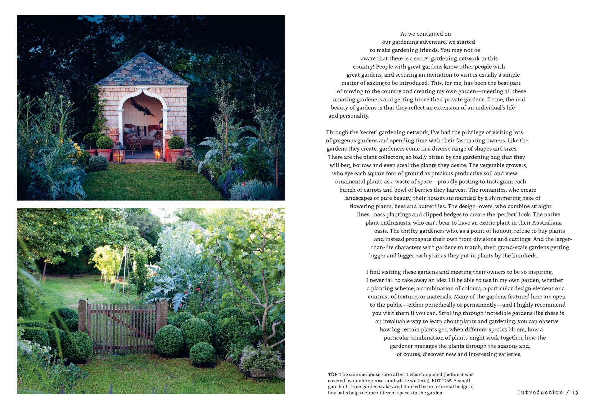 This book is like a spending a warm afternoon with friends under a tree in a country garden. This book is oh-so-Australian, in that there are riotous gardens, extraordinary plantings and green, green spaces, all set against the backdrop of the distinctive Australian landscape.