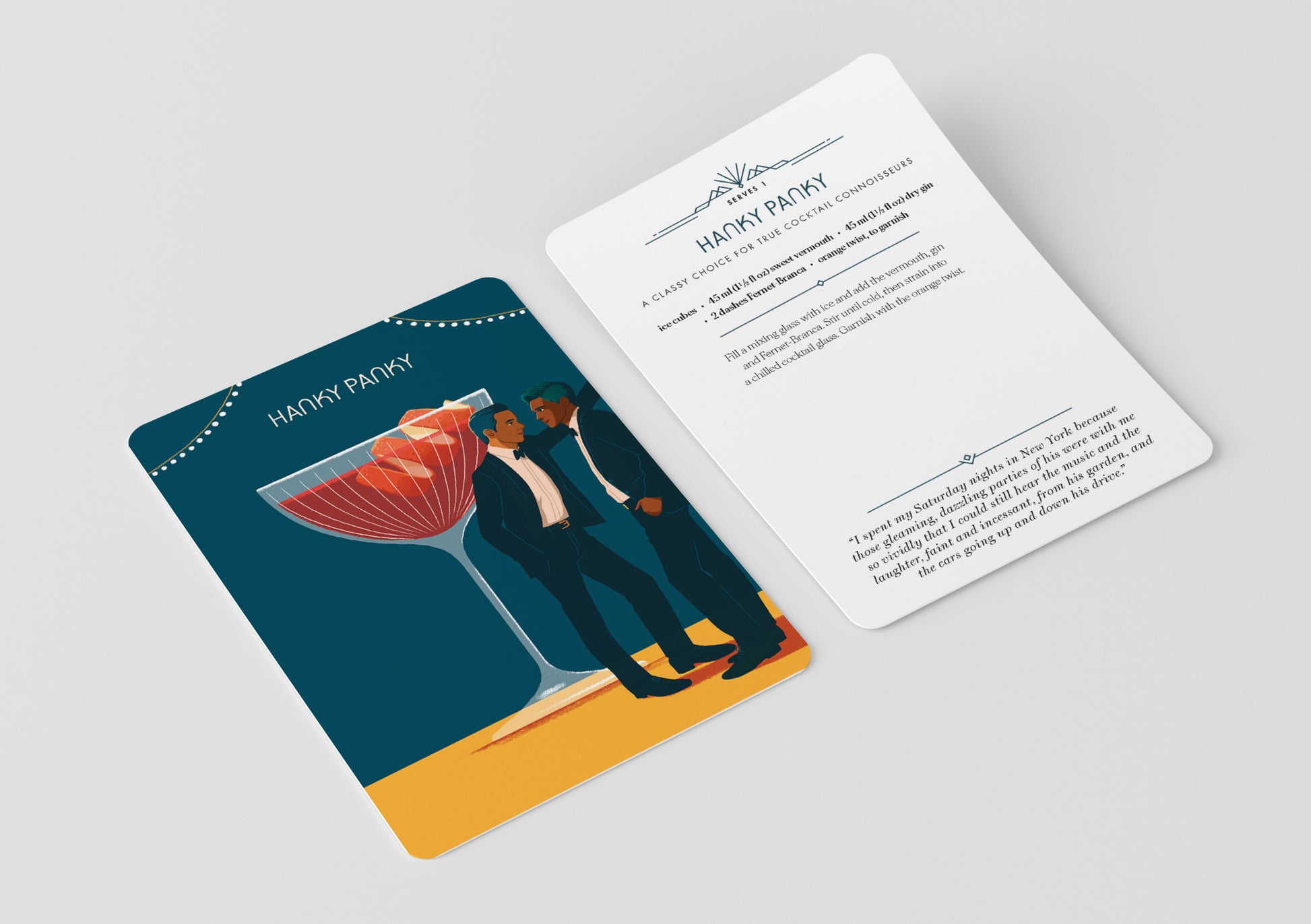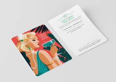 Transport your guests back to 1920s Long Island by throwing a Gatsby-era themed party. This beautiful deck contains recipes for cocktails and sweet and savory food, as well as ideas for invitations, venues, fashion, place settings, decorations, conversation starters, dance how-to’s and party games.