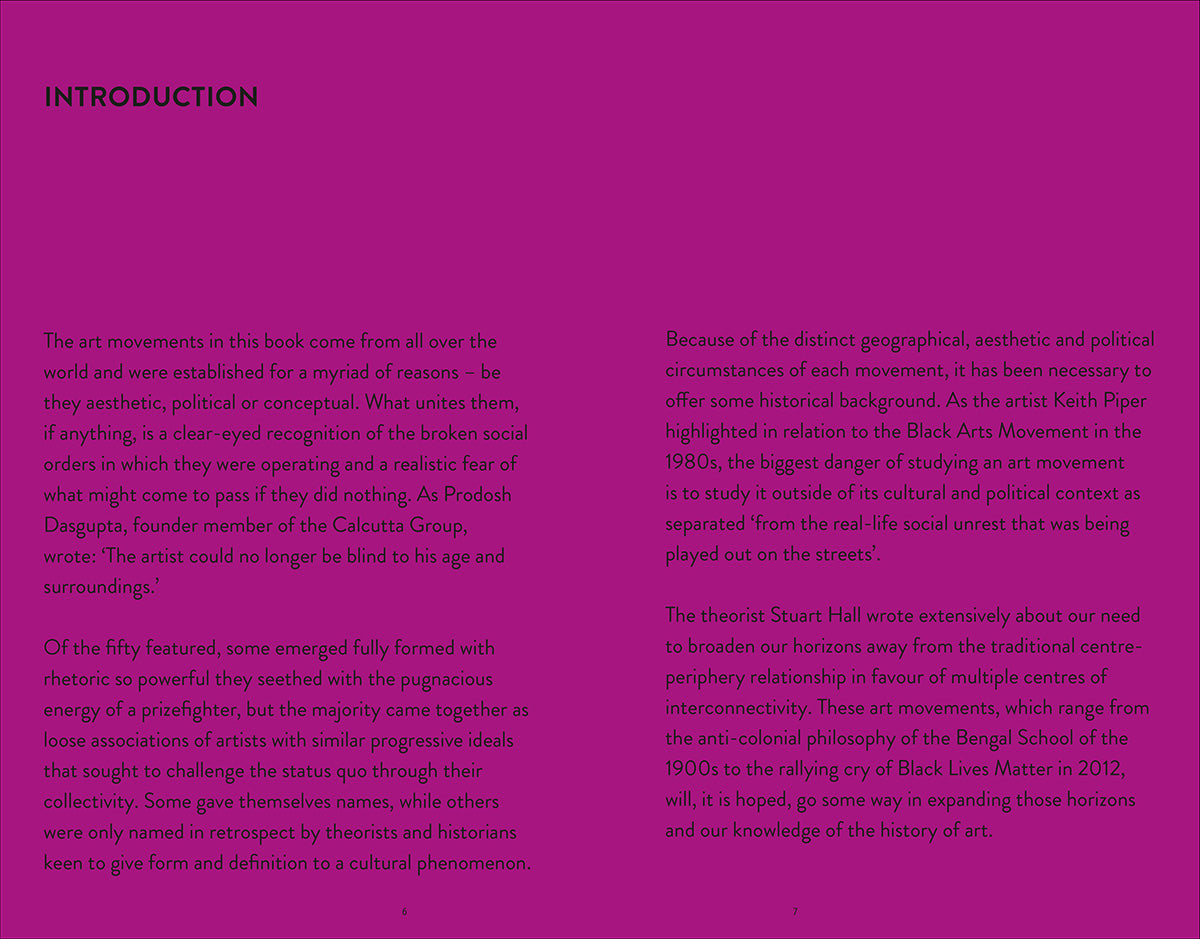 Jessica Lack introduces fifty pioneering modern and contemporary art movements born out of political engagement, decolonization, marginalization or conflict. These movements have aimed to revitalize society by challenging the status quo. While not as well known as Pop Art, Dada and Futurism, these associations of artists - such as the Saqqakhaneh artists of Iran, the Stridentists of Mexico, Jikken Kobo of Japan or America's AfriCobra - have empowered and given voice to their members.