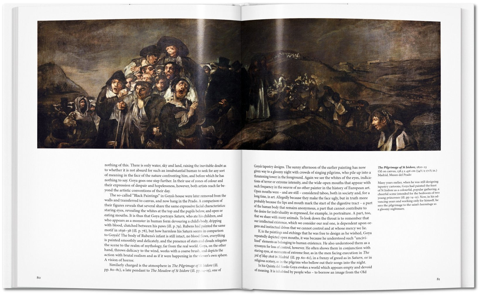 In this introductory book from TASCHEN Basic Art 2.0 we set out to explore the full arc of Goya's remarkable career, from elegant court painter to deathly seer of suffering and grotesquerie. Along the way, we encounter such famed portraits as Don Manuel Osorio Manrique de Zúñiga, the dazzling Naked Maja, and The 3rd of May 1808 in Madrid, one of the most heart-stopping images of war in the history of art.