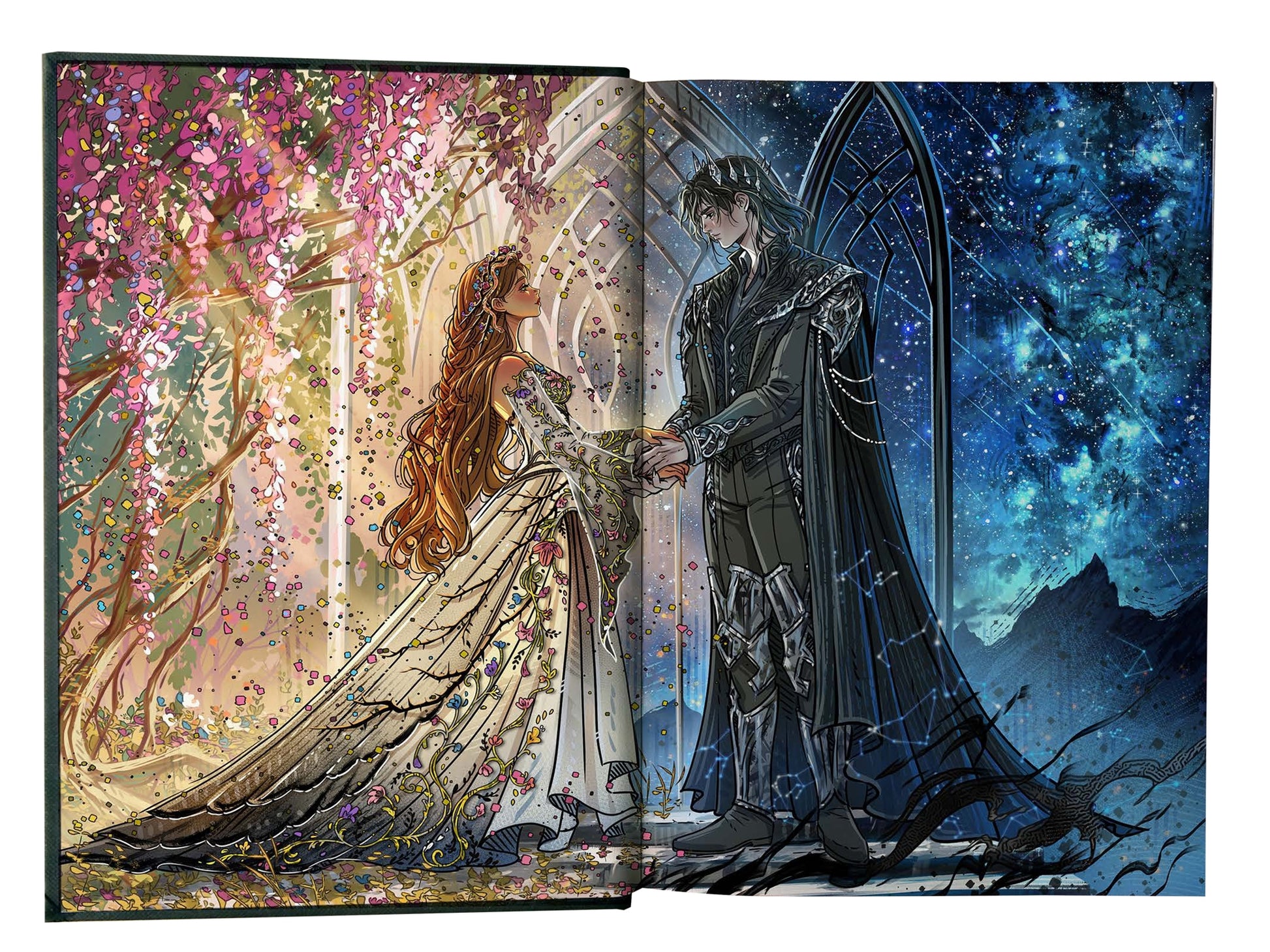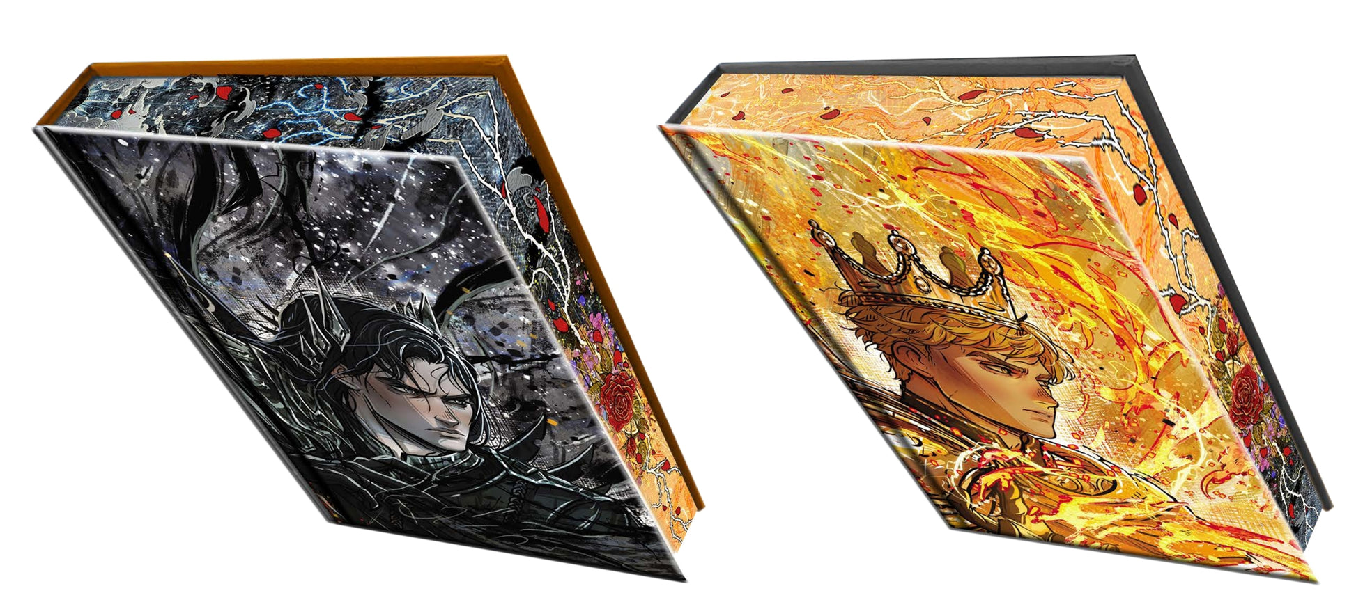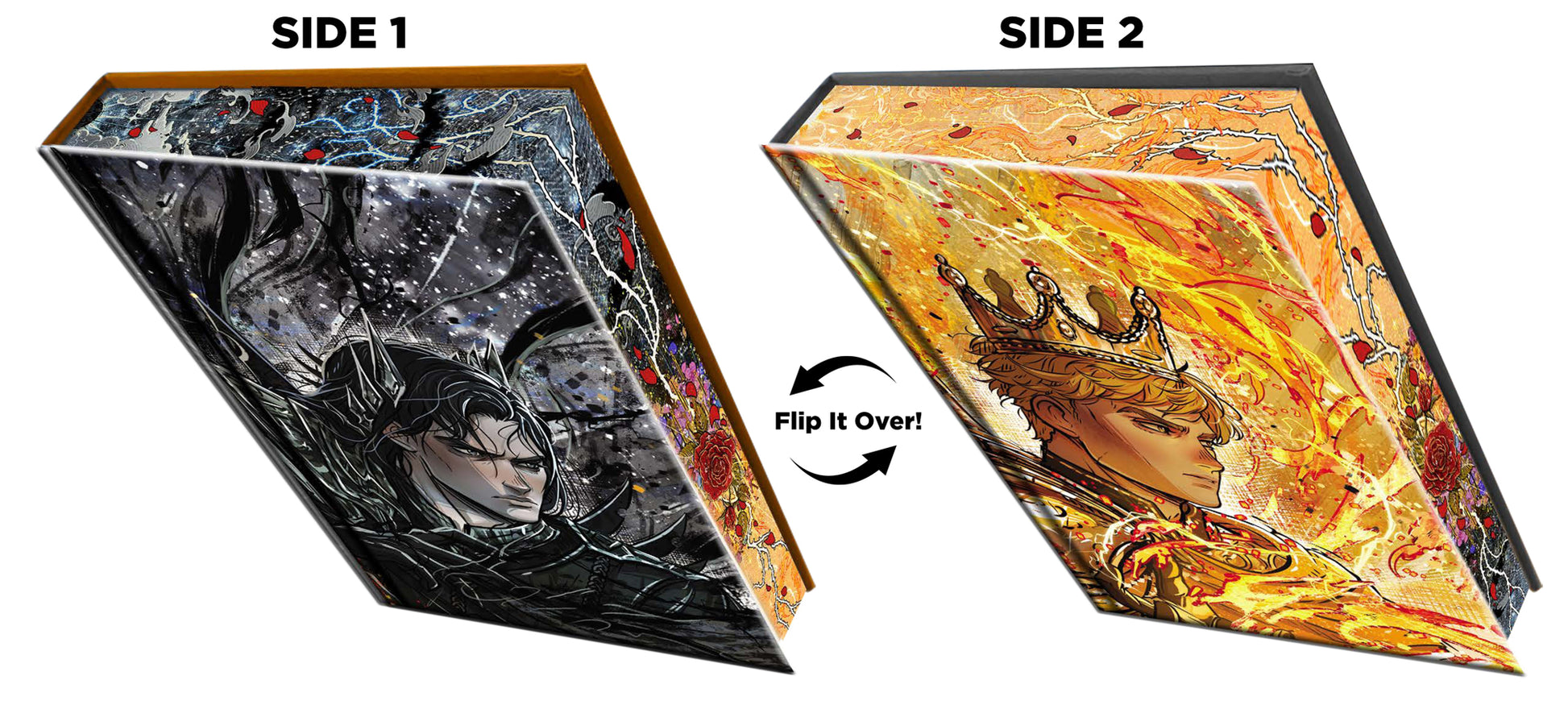 True love knows no bounds. This premium, dual-sided volume includes two complete novellas bound together to create one can't-miss collector's item. The first novella-told from Grim's perspective-gives readers insight into his past: the motivations and events that cemented his fate as Isla's eventual love interest. The second is narrated by Oro and offers a window into his complex identity: that of a king torn between desire for justice and passion for the woman he loves more than anything. Grim and Oro: Dueling Crowns Edition includes key moments from the rulers' love stories with Isla, expanded upon in their own voices.