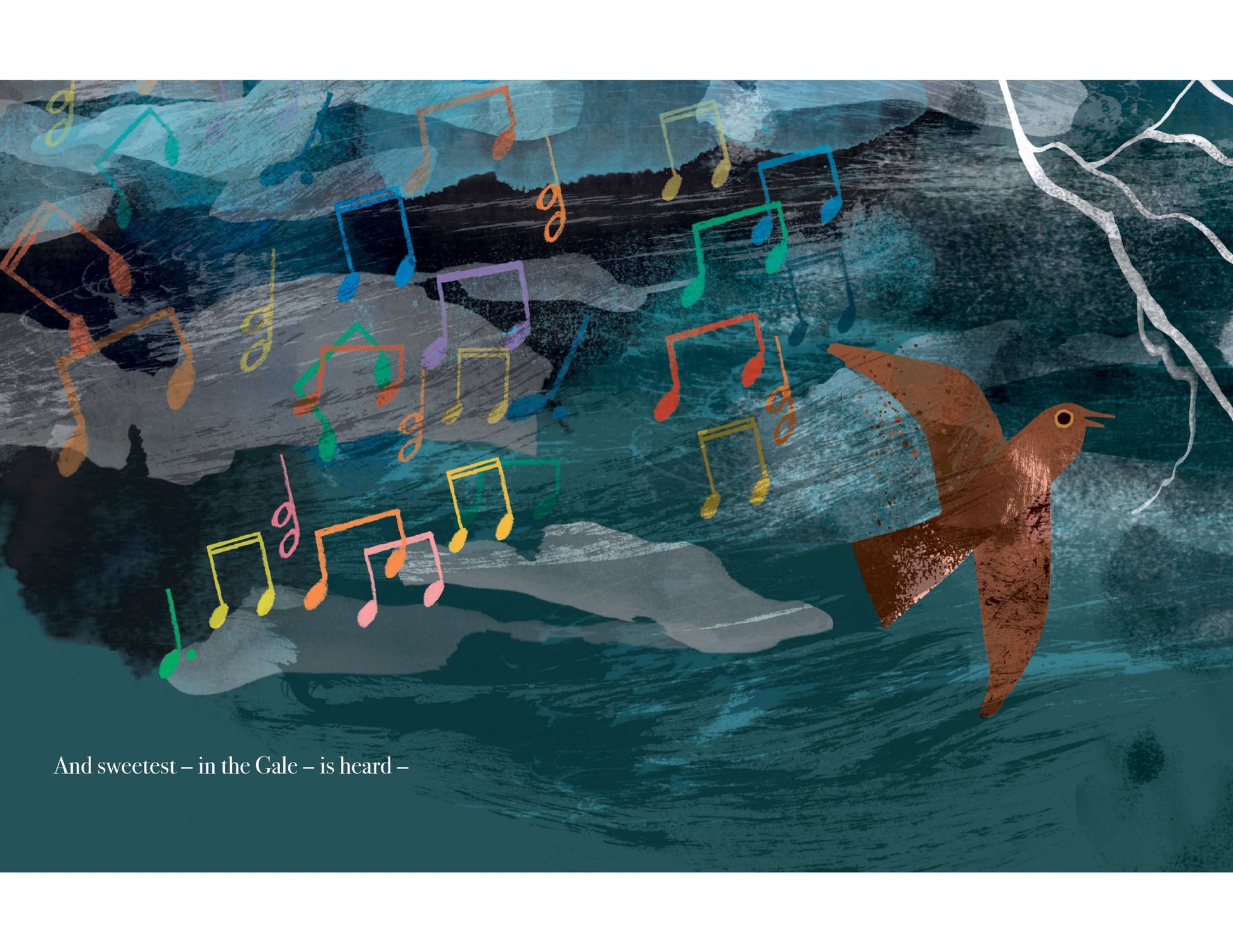 Follow one brave little bird as it flies around the world, giving hope to people everywhere through its beautiful tune. Even a terrible storm can't dampen this little bird - like hope, it continues unabashed, never asking anything from the people who take comfort from it.