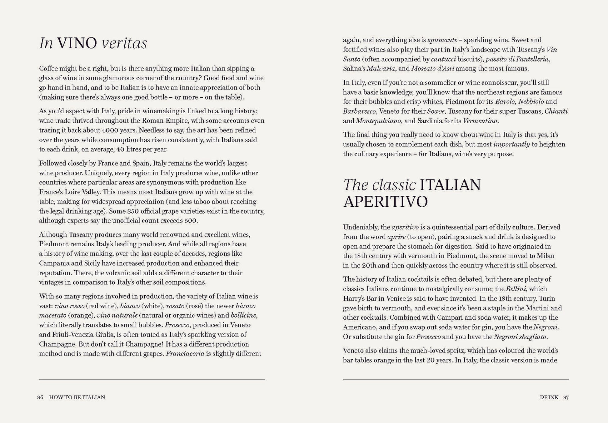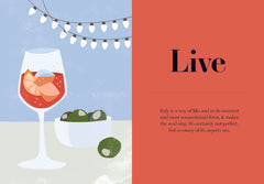 This book is a celebration of the Italian lifestyle – an education in drinking to savour the moment, travelling indulgently, and cherishing food and culture. A lesson in the dolce far niente: the sweetness of doing nothing. We may not all live in the bel paese, but anyone can learn from the rich tapestry of life on the boot.