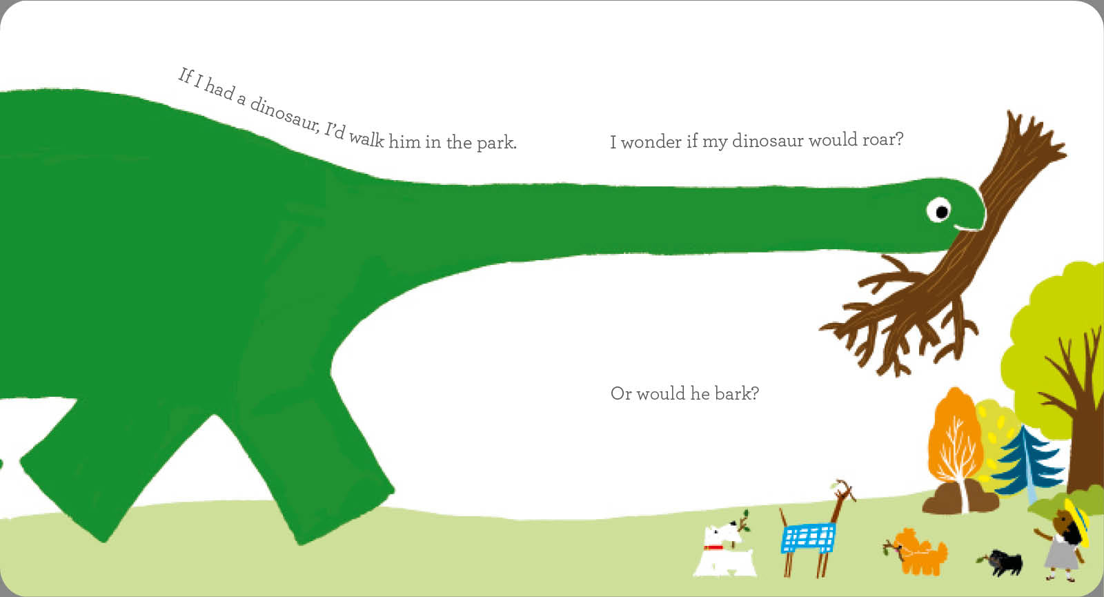 Now available as a board book: the award-winning illustrated bedtime story about a little girl who imagines what it would be like to have a dinosaur of her very own.