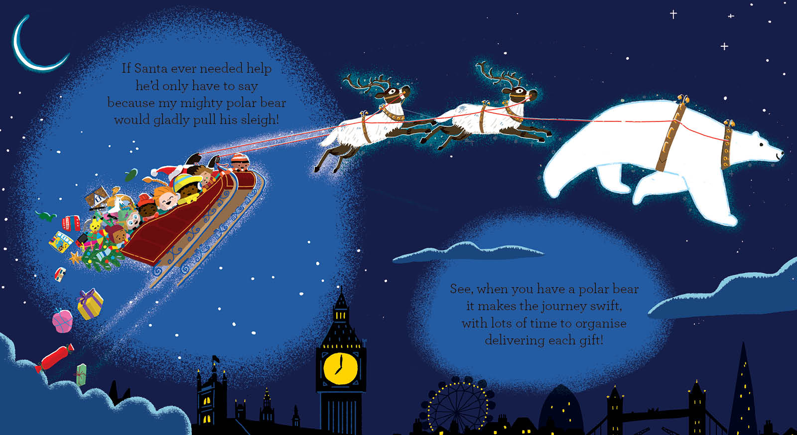 What would life be like with a polar bear as a pet? Polar bears might look soft and cuddly, but they are also super-strong, so getting to school would be a breeze even on a snowy day. They'd show off their ice-skating skills, then help to hunt a fish-and-chip dinner. And since polar bears can swim for days at a time, with endurance like that, if Santa ever needed help delivering presents guess who he would call?