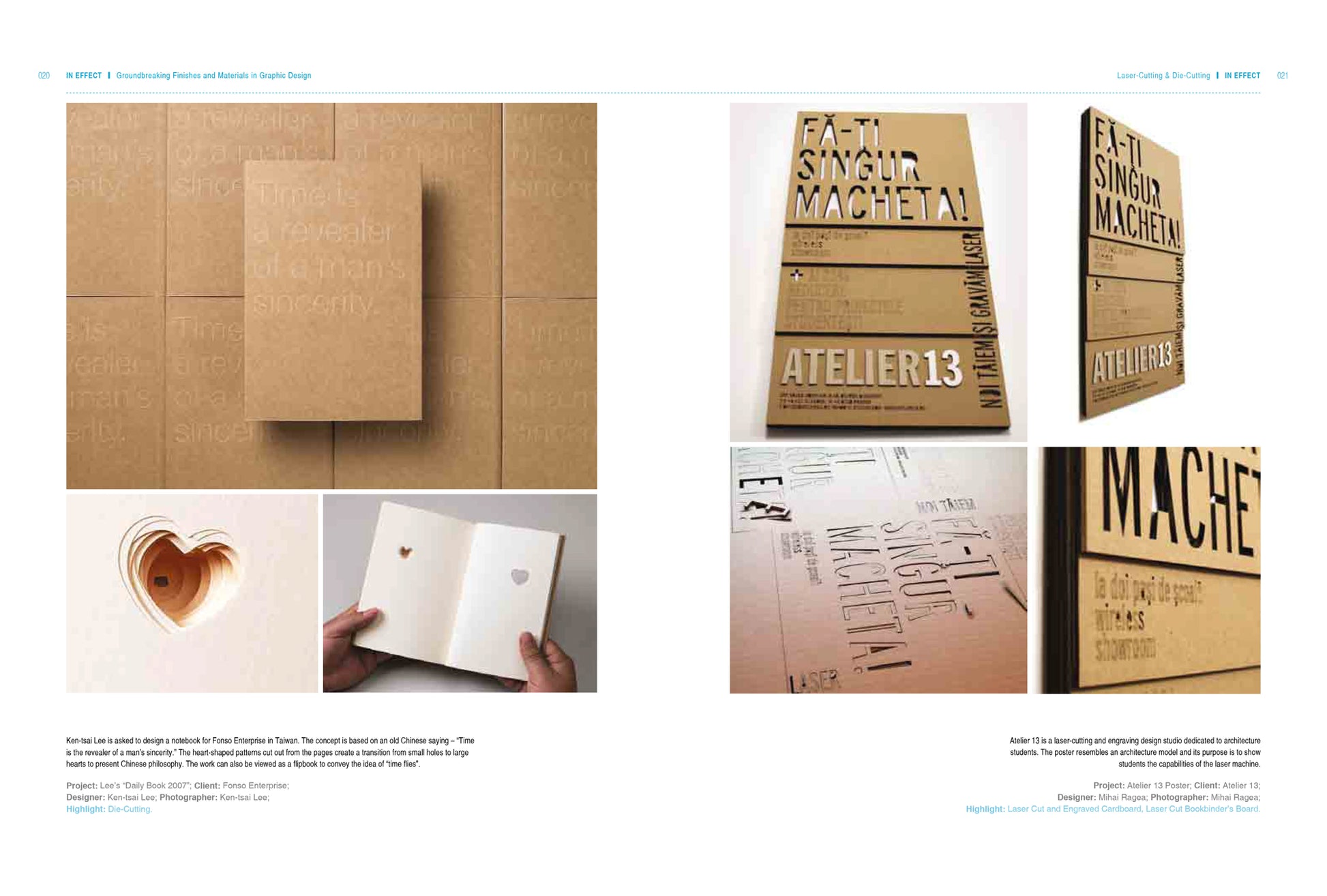 The selection of the right material and finishes is an inevitable and vital task for almost every designer. In Effect explores the field of graphic design to present readers the perfect combination of materials and techniques through outstanding works of design as well as the varied effects techniques may produce in different materials. This book is essential for any designer who wants to explore new materials and approaches to seek inspirations.