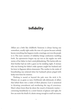 Infidelity and Other Affairs begins with this puzzle: is unfaithfulness a predisposition or a learned behaviour? From there, Legge contemplates a vast catalogue of behaviours as she strives to understand how we