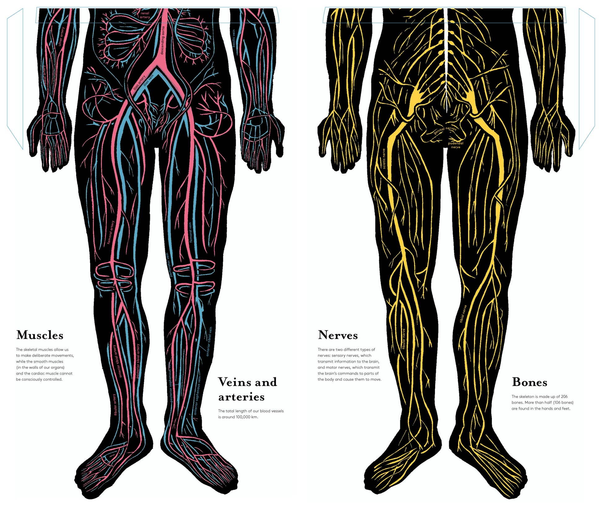 Discover the mysteries of the human body in this magnificent book. Cleverly designed, annotated lift-up flaps allow you to explore the wonders hidden beneath our skin as never before. Four large-scale figures unfold to illustrate the muscles, nerves, circulatory system and skeleton in meticulous detail. You will also see inside our organs, digestive system, limbs, head and brain, and follow the development of a baby from foetus to birth.