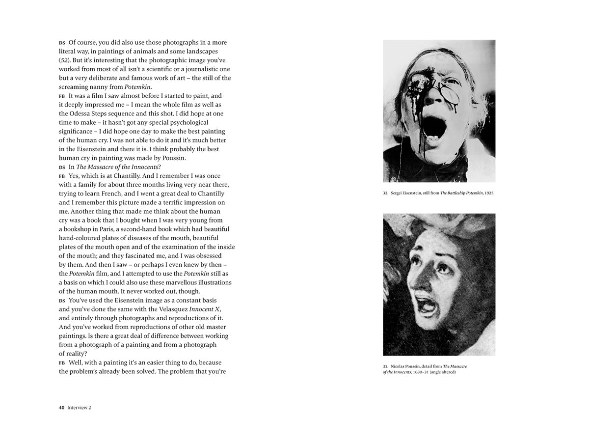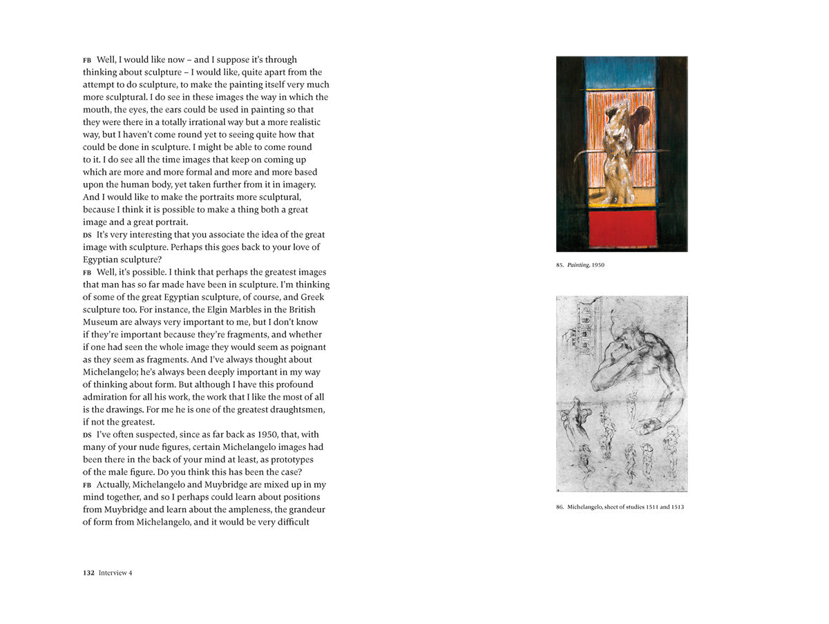 Bacon's obsessive effort to record and re-create the human form, his practice of making variations on old masters' paintings and on photographs, his dependence upon chance, and his views about the way in which his work has been interpreted are only some of the many subjects discussed and investigated in depth during these historic encounters.