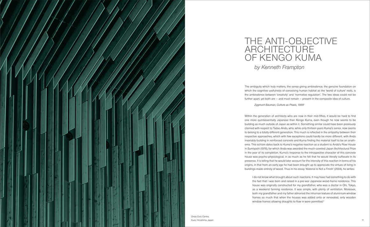 The quintessential Japanese architect of today, Kengo Kuma has forged a modern design language that artfully combines the country's traditional building crafts with sophisticated technologies and materials. From his iconic Glass House (1995) to Dundee's V&A (2018), this is the complete record of Kuma's built work, comprising thirty projects to date. Kenneth Frampton's revised and updated essay frames Kuma's work in the context of post-war Japan's flourishing architecture scene and influential figures, and recounts the international acclaim that Kuma's ideas and buildings have received. The heart of the book consists of projects presented in detail, accompanied by descriptive text and detailed drawings, and organized by the material themes that have come to define the architect's output. This new edition includes five new projects: Komatsu Seiren Fabric Laboratory fa-bo, Under One Roof project for the EPFL ArtLab, Japan House São Paulo, China Academy of Art's Folk Art Museum, and the V&A Dundee.
