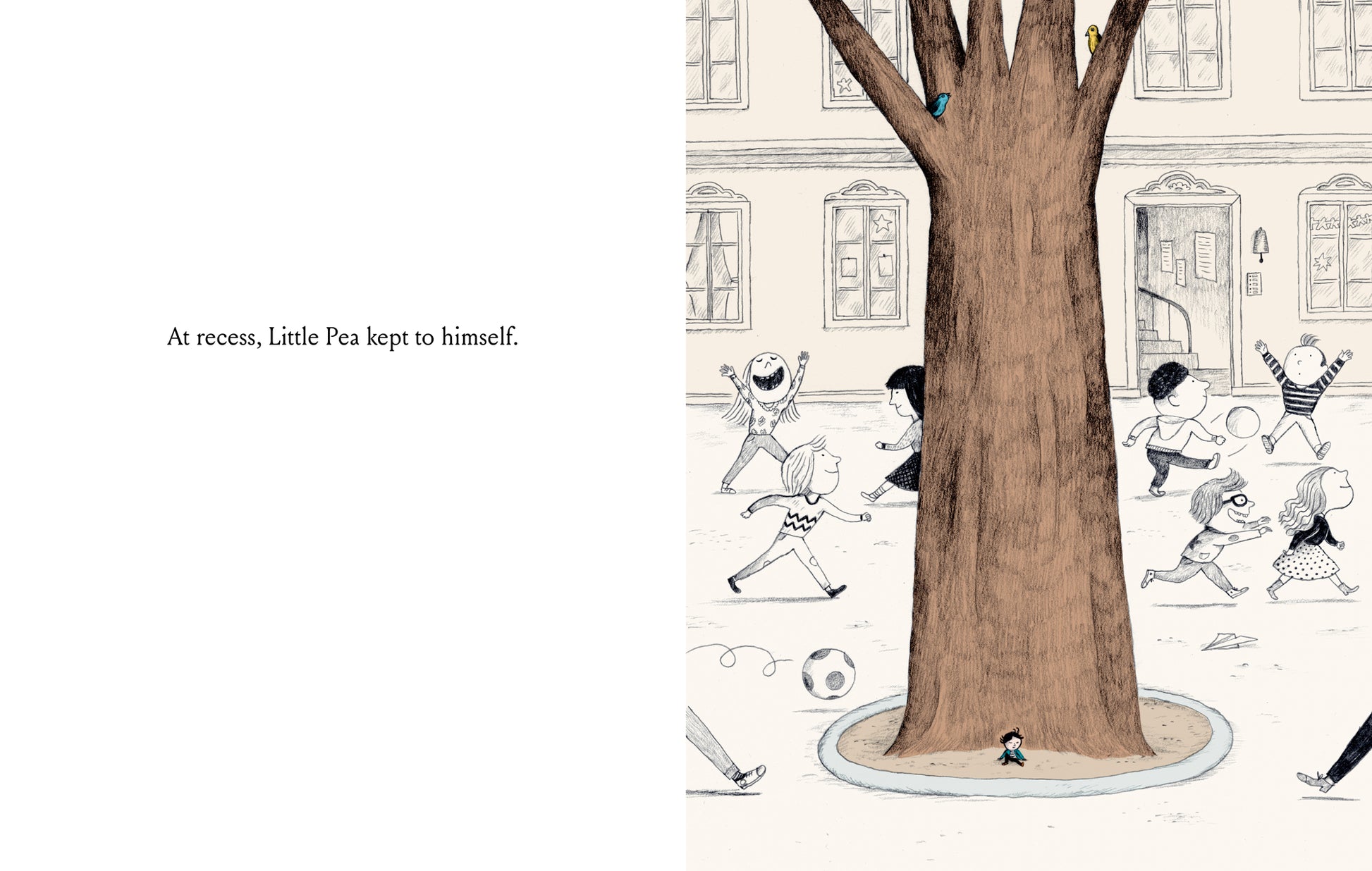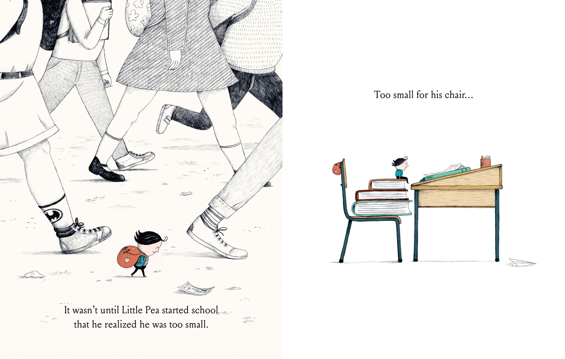 Little Pea was born tiny, but with big aspirations. As he grows up, he loves to climb, explore, swim, daydream-just like any other kid his age. But when Little Pea starts school, the realization of how small he is sets in. Suddenly, he's too small to sit at his desk, play the flute, or even join classmates at recess. What will become of Little Pea?
