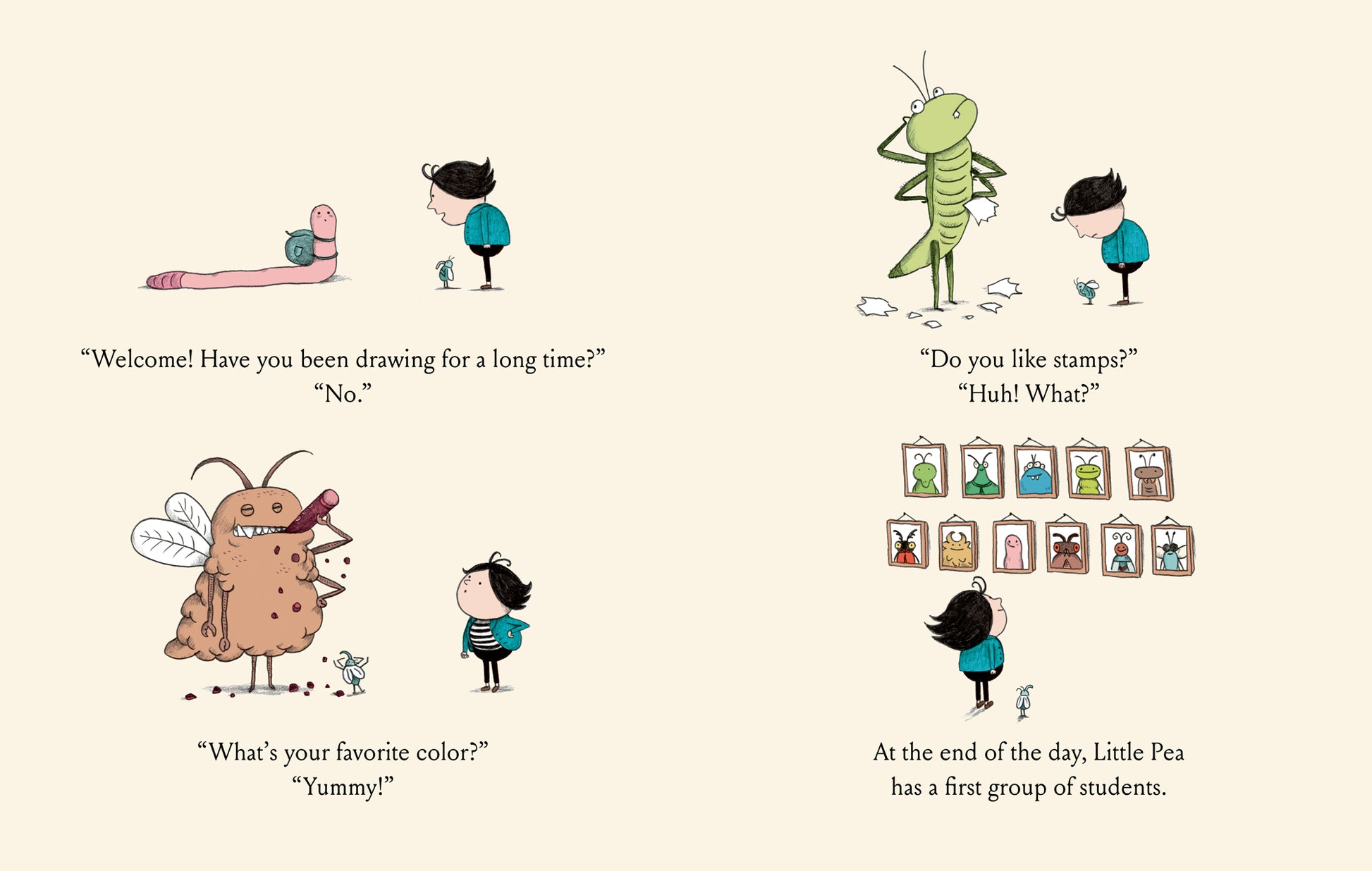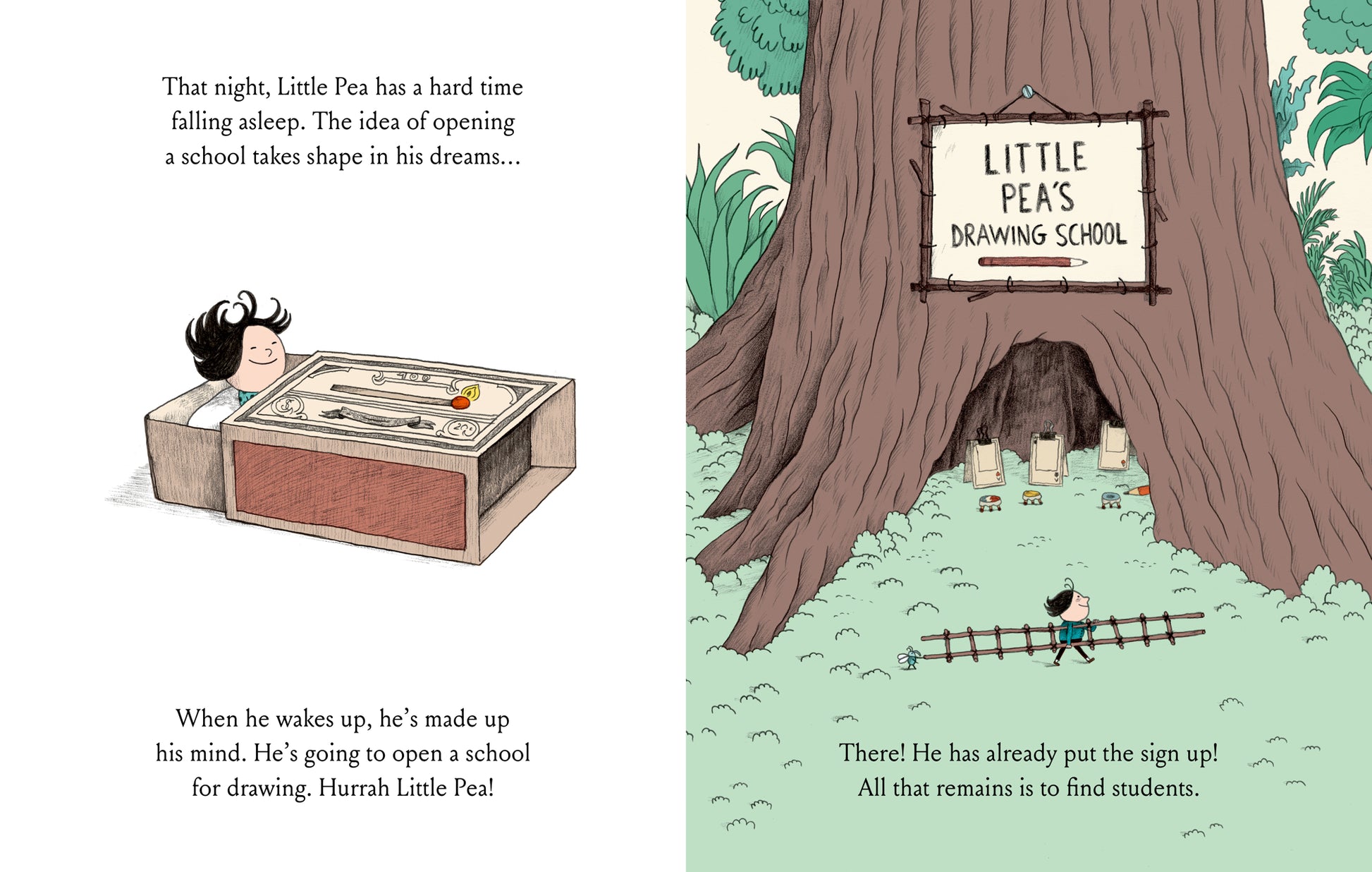 Little Pea is now an accomplished artist. One day, a friend encourages him to open a drawing school and help others tap into their creativity - what a marvelous idea! But as his students work hard to improve their skills and techniques with each passing class, Little Pea soon learns that one does not always recognize a great artist at first glance.