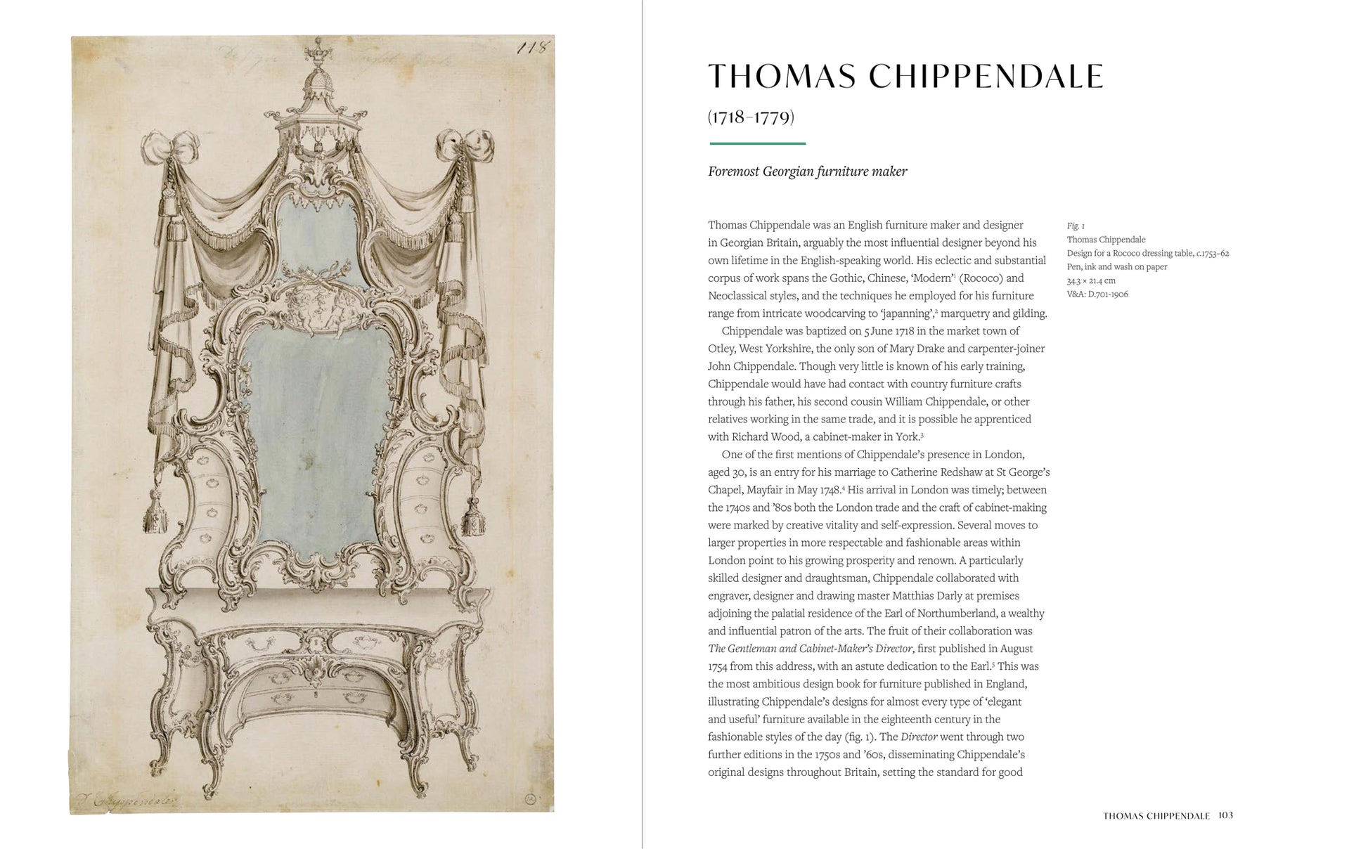 The book features forty illustrated biographies, ranging from furniture makers such as Thomas Chippendale to woodcarvers such as Grinling Gibbons, textile artists including Gunta Stölzl and ceramicists such as Lucie Rie, alongside goldsmiths, enamellists and many more. It also explores less familiar names who made a significant contribution to their field, brought together by their extraordinary skill and innovative use of technology and materials. While maintaining a focus on makers in Europe and North America, the book surveys a range of international influences in the biographies and thematic introductions. These thematic introductions also explore important moments in the history of the decorative arts, ranging from early modern craft and industrialization through to the Arts and Crafts Movement, modernism and the post-war craft revival.