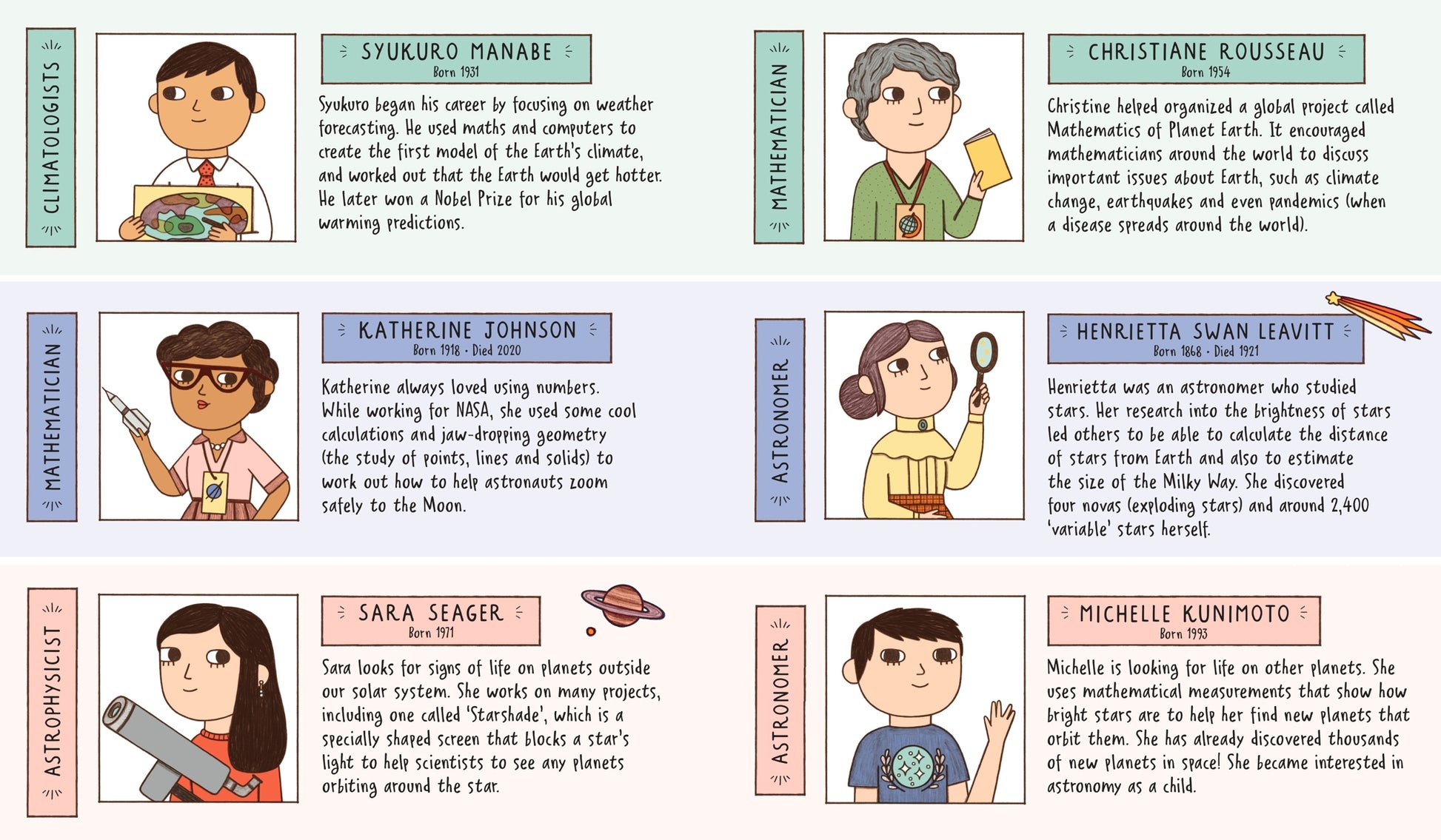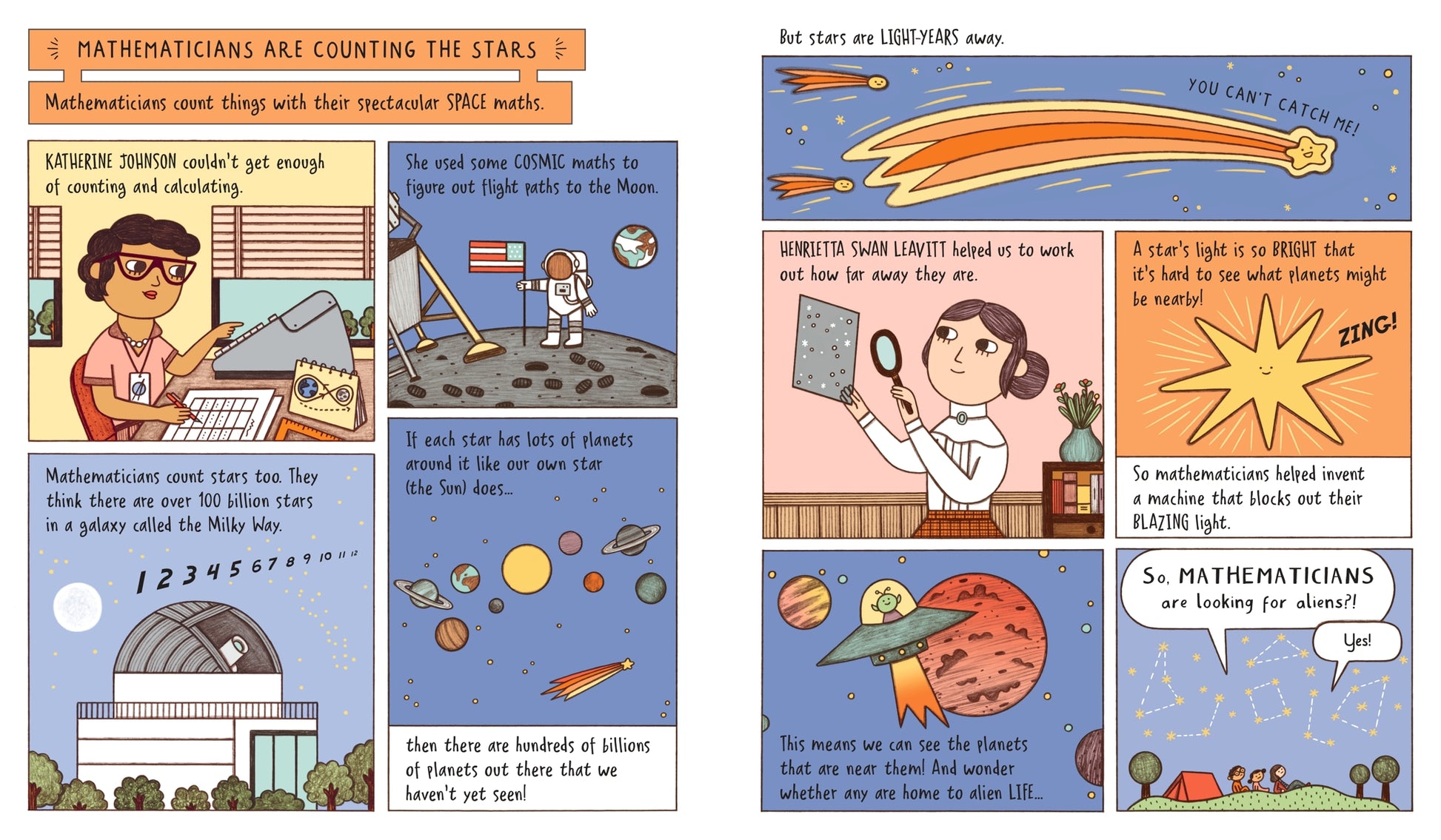 Young readers will meet more than 20 inspiring, real-life mathematicians, and discover how they find out how fast animals are, look at what's inside our bodies, code computer games, predict the future... and even look for aliens!