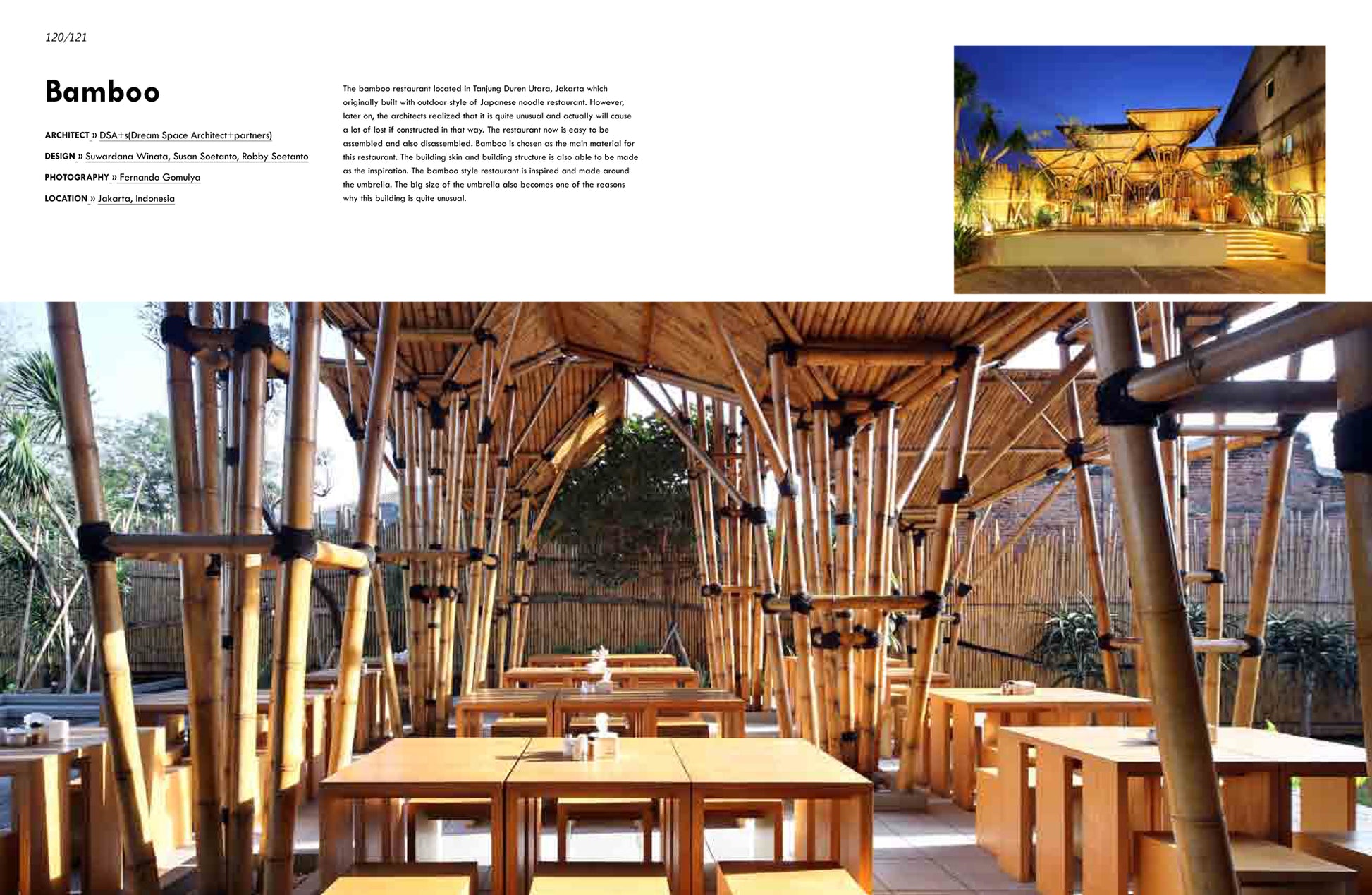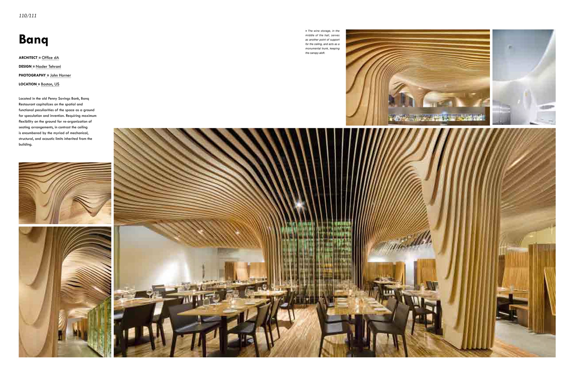 One of A Kind—Restaurant Design brings to readers not only visual pleasure from the special architectural features and spatial arrangement, but also a feast for all senses through 72 distinctive restaurant designs of differing styles, whose themes constitute their remarkable appeals. Restaurants include PHOS in Mykonos, Greece; Bamboo in Jakarta, Indonesia; Fabbrica Bergen in Bergen, The Netherlands; Yellow Tree House in Auckland, New Zealand; and the Jamie Oliver Food Truck in the US.