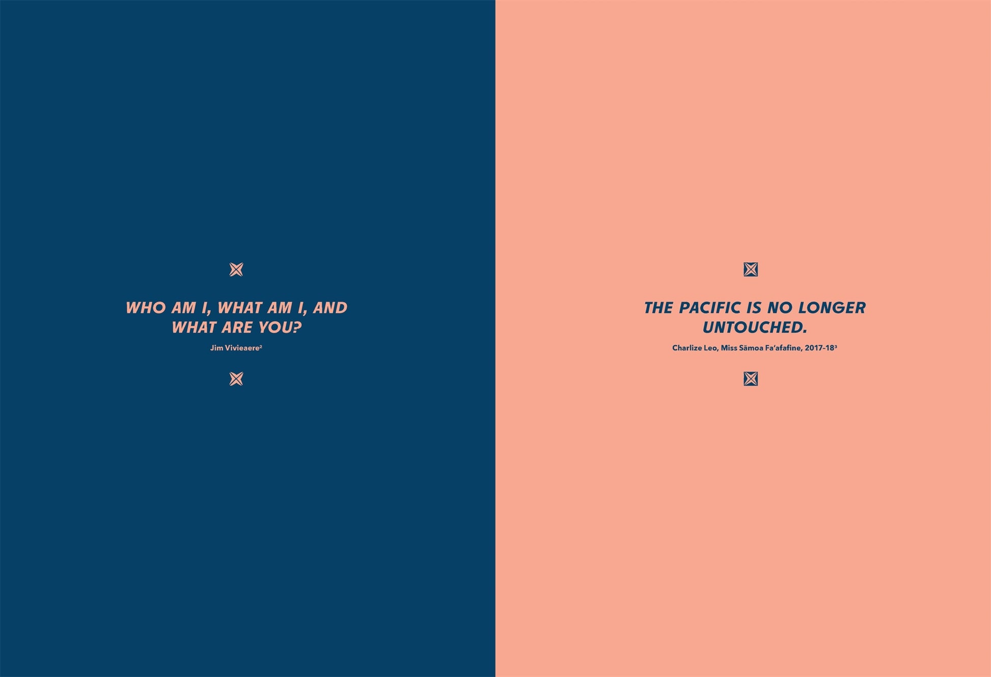 The book contains contributions from Tahiti to Aotearoa. High-profile contributors include New York-based Cuban artist, scholar and activist Coco Fusco, Tahitian author Chantal Spitz, Filipino curator and professor Patrick Flores, and Australian arts leader Natalie King OAM (who edited the book).