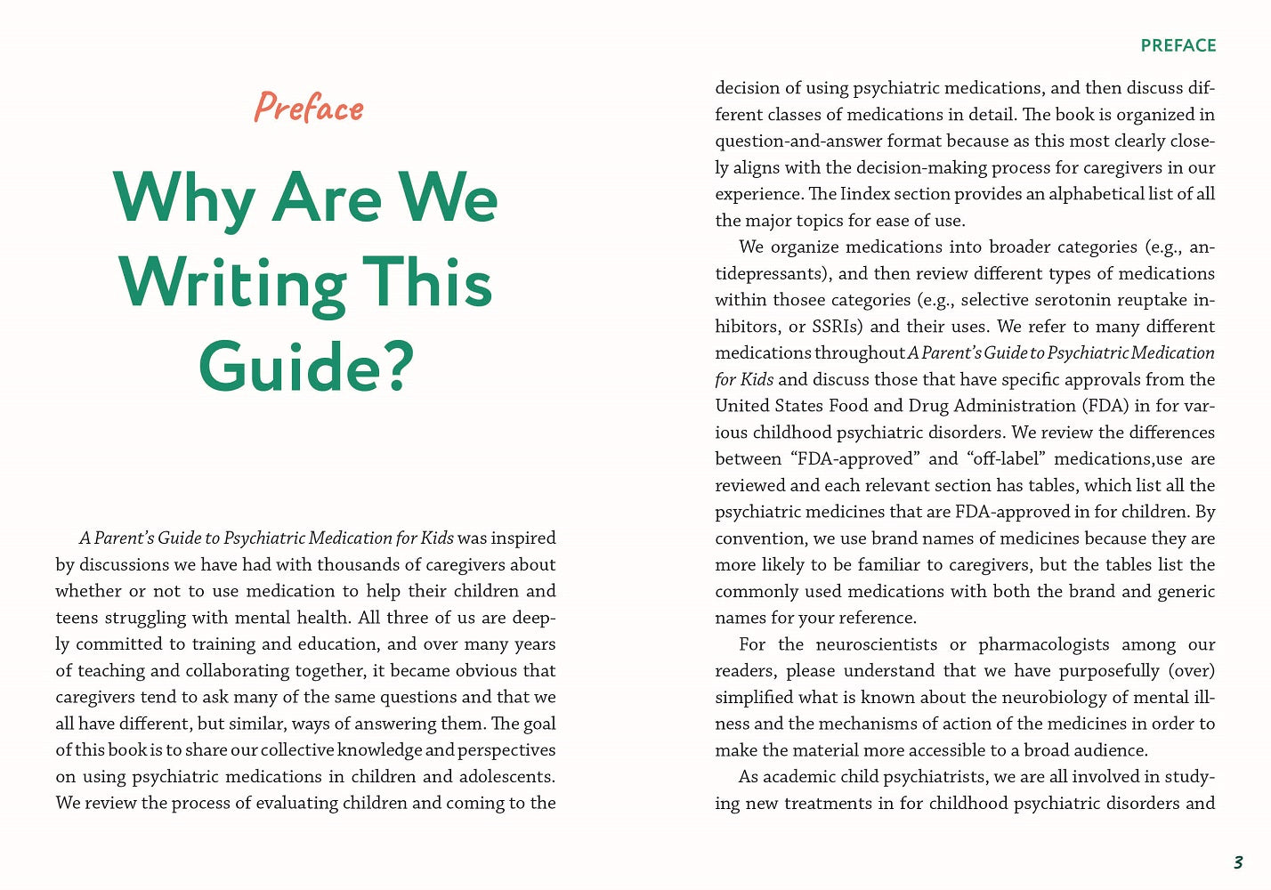 Alex Kolevzon, MD, is a child and adolescent psychiatrist with more than 20 years of clinical and research experience. He is a Professor of Psychiatry and Pediatrics at the Icahn School of Medicine at Mount Sinai in New York where he serves as the Clinical Director of the Seaver Autism for Research and Treatment. His research is focused on developing new treatments for people with neurodevelopmental disorders, which include behavioral interventions, medications, and gene therapy. He is also the Director of Child and Adolescent Psychiatry for the Mount Sinai Health System. In this role, Alex is dedicated to ensuring children, adolescents, and families across New York City receive the best possible care from experts at Mount Sinai, advancing science across childhood psychiatric disorders, and training the next generation of clinicians specializing in children’s mental health. Alex is also passionate about education; he is a frequently invited speaker nationally and internationally and has won numerous awards as an active teacher, mentor, and clinical supervisor. Robbie Jaffe, MD, is an Associate Professor of Psychiatry and Pediatrics at the Icahn School of Medicine at Mount Sinai, where he is the Training Director for Child and Adolescent Psychiatry. Robbie teaches the psychiatrists of tomorrow as the Program Director for Mount Sinai’s Child and Adolescent Psychiatry Fellowship. Robbie runs a teaching clinic working with a team of fellows, psychologists, and social workers to help kids and teens with anxiety, obsessive-compulsive disorder (OCD), and tics and Tourette’s disorder. He is also the Director of the Tourette Association of America’s Center of Excellence at Mount Sinai, where he researches novel treatments for Tourette’s disorder and attention-deficit/hyperactivity disorder (ADHD). He has written chapters and given invited lectures on tic disorders and how they interact with anxiety, OCD, and ADHD. Pilar Trelles, MD, is a native Peruvian but spent 20 years in the New York City area where she completed her postgraduate training in general psychiatry at New Jersey Medical School, Rutgers University, and child and adolescent psychiatry at the Icahn School of Medicine at Mount Sinai. After child psychiatry training, she pursued an additional specialized fellowship in neurodevelopmental disorders, also at Mount Sinai, where she focused on using genetics to advance therapeutics in the field. She is currently faculty at Harvard Medical School and works at Boston Children Hospital, where she leads psychiatric care for children with autism spectrum disorder and efforts to increase diversity and inclusion in psychiatric clinical trials more broadly. Pilar is passionate about working with caregivers and other stakeholders to bridge advances in the field of child psychiatry to community care and has participated in multiple research projects and educational initiatives with this goal in mind.