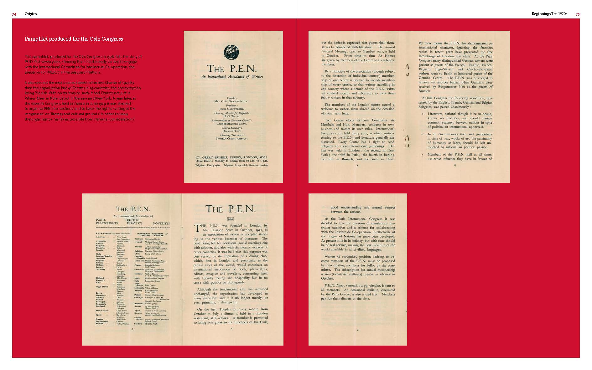 PEN - 'Poets, Essayists, Novelists' - was founded in London in 1921 to promote friendship, intellectual co-operation and exchange between writers from around the world. It has since become a worldwide network of writers, a community extended to more than 100 countries who for 100 years has worked to celebrate all literatures without exception and protect freedom of expression.