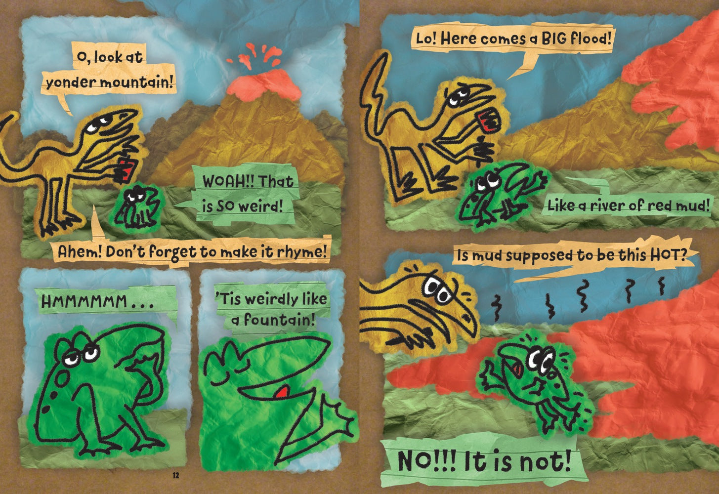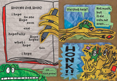 Lucky for these pals, the wide, wild world is full of inspiration—and danger. Dodging volcanoes and carnivores, the two friends meet a bunch of new poetry pals: two-word poems with Iguanodon, beat poetry with Parasaurolophuses. And then there’s the dreamy archaeopteryx named Hope, who just might inspire the world’s first love poem.
