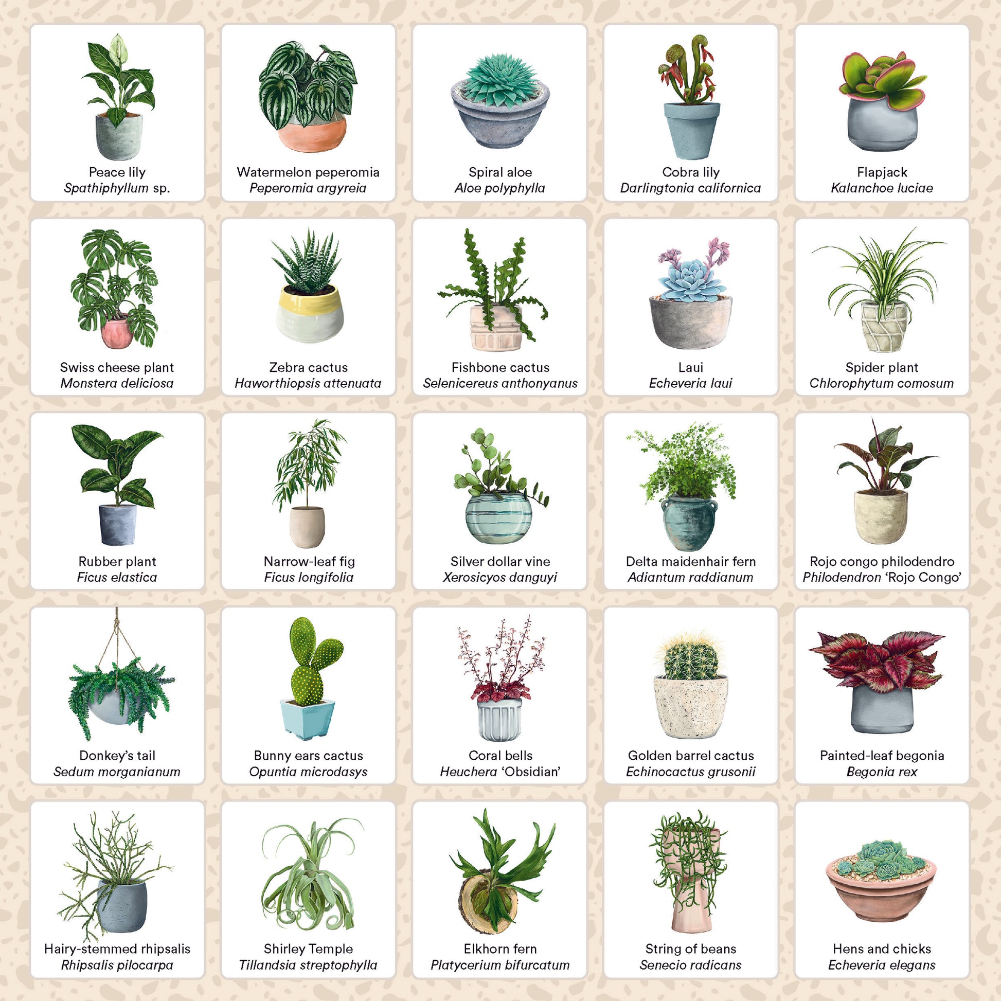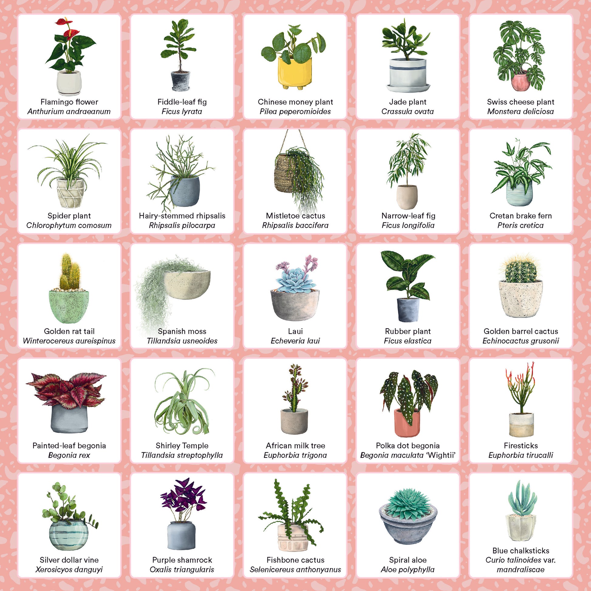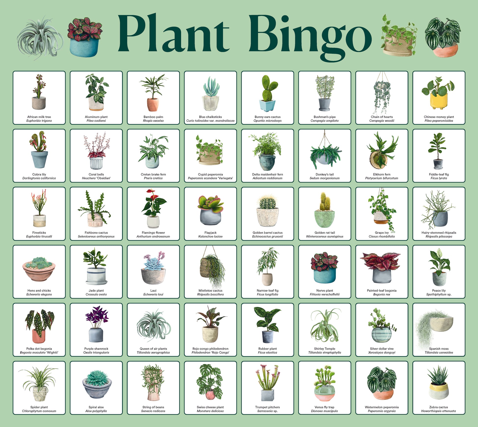 Houseplants have the power to transform any room, or game. From Swiss cheese plant and Bunny ears cactus to Elkhorn ferns and Spanish moss, Plant Bingo features all the classics, with no care required. Gather your friends and decide, once and for all, who will be crowned the true ruler of the indoor jungle.
