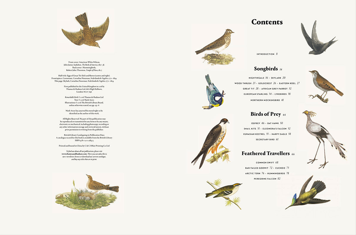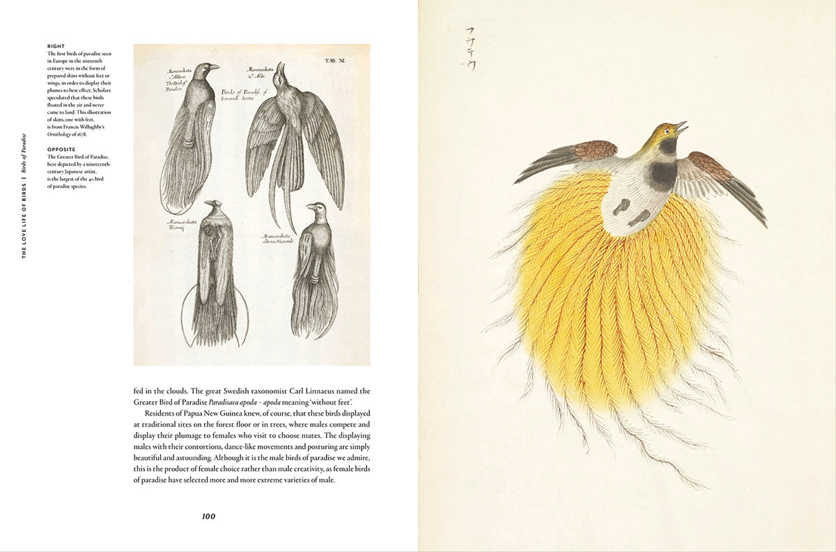 'Songbirds' celebrates the greatest bird virtuosi, such as the Nightingale, while 'Birds of Prey' include majestic hunters such as the Harpy Eagle, which catches prey as large as monkeys and sloths. 'Feathered Travellers' describes astounding journeys made by birds - even some tiny Hummingbirds migrate huge distances. 'The Love Life of Birds' can rival any soap opera and involves the most brilliant displays, notably the Birds of Paradise, with their extravagant feathers and dances. 'Avian Cities' explores species such as the Flamingo that live in spectacular large colonies. 'Useful to Us' examines the ways we find birds of value, such as the Turkey, but also the Canary. 'Threatened and Extinct' describes some no longer living and others that seem on the brink. Birds have also had great mystical significance, both for good and evil, and 'Revered and Adored' considers such species as the Sacred Ibis, believed by the ancient Egyptians to represent the god Thoth.