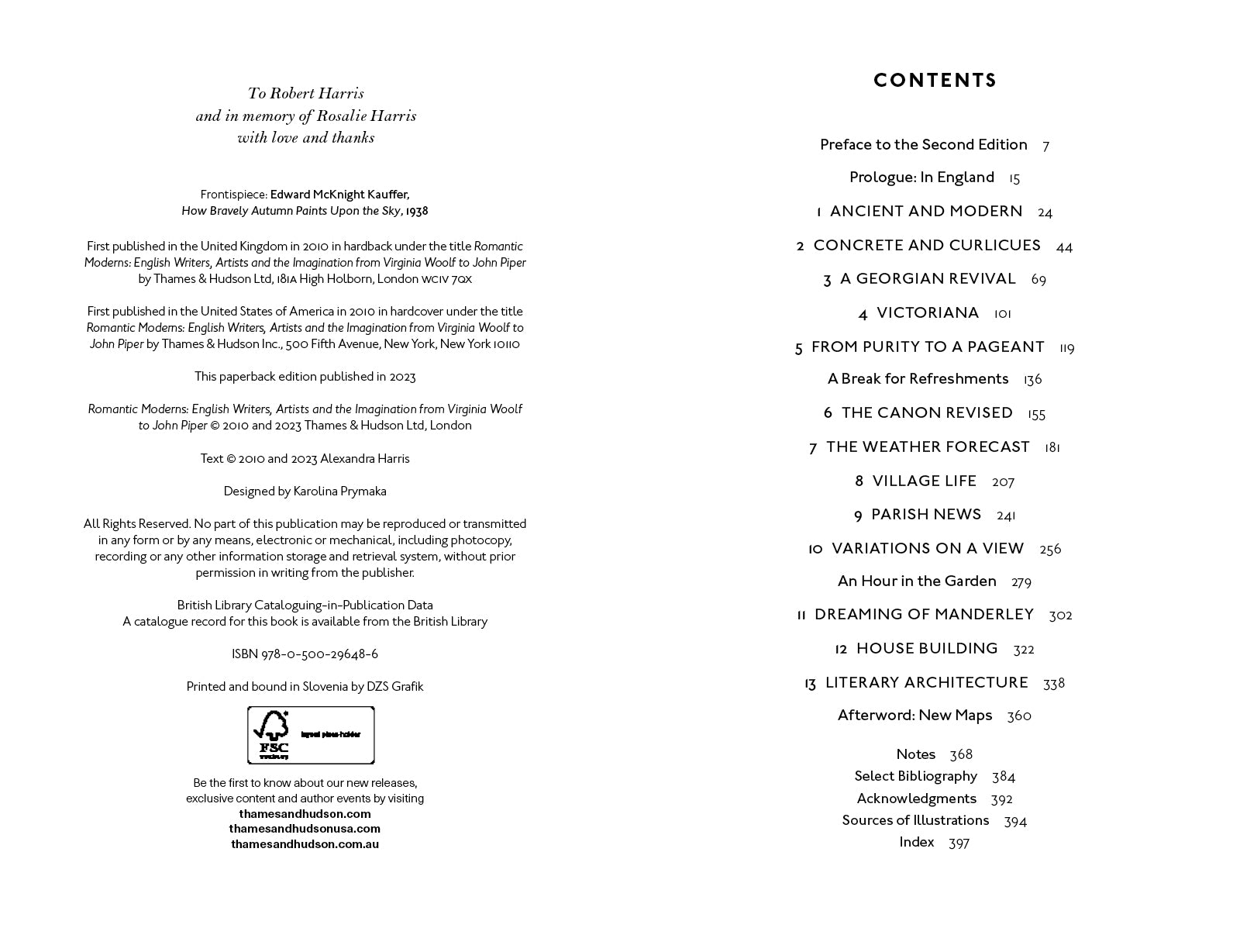 Alexandra Harris was educated at the University of Oxford and the Courtauld Institute, London, and is currently Professorial Fellow, Department of English Literature at the University of Birmingham. She is the author of several books, including Weatherland and Virginia Woolf, both published by Thames & Hudson.