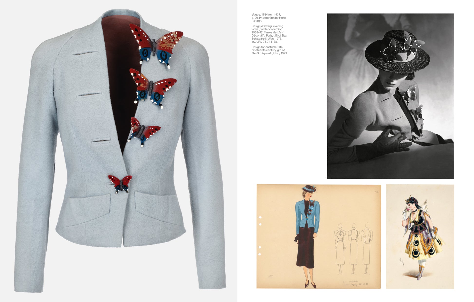 The couturière Elsa Schiaparelli (1890-1973) was a key figure in Paris fashion between the two World Wars. Following in the footsteps of her mentor Paul Poiret, she designed her first knitwear collection in January 1927. Decorated with trompe-l'oeil motifs in black and white, her sweaters were an immediate success in both France and the USA. In 1935, the Maison Schiaparelli opened in the Place Vendôme in Paris, selling collections designed for sports, city and evening wear.