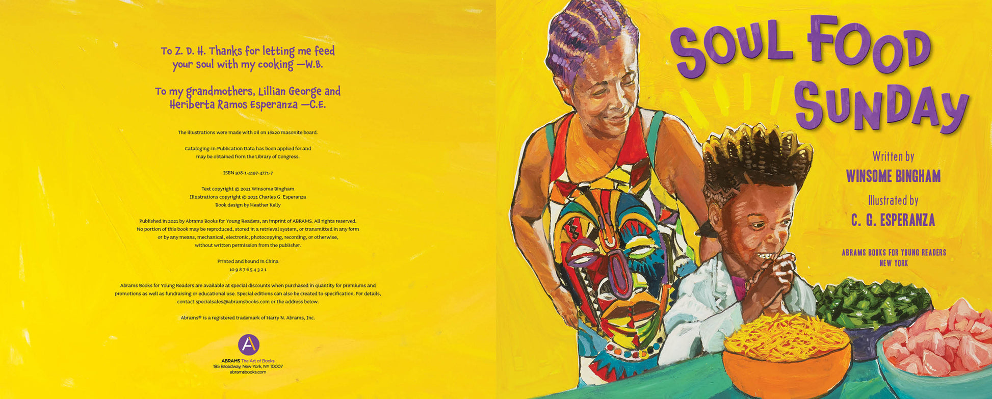 C. G. Esperanza is the second of six cool kids. The South Bronx is where he first opened his eyelids. A dope land shrouded in bright-colored decay, the home of graffiti and hip-hop DJs! He paints funky elephants! Bodegas, too! Mixed with this wonder is some whimsical truth. Esperanza has a voice that is seldom heard. A fusion of jazz, distorted guitars, and chirping birds. Esperanza is the illustrator of Soul Food Sunday, for which he received a Coretta Scott King Illustrator Honor; the author-illustrator of Boogie, Boogie, Y’all, for which he received a Pura Belpré Youth Illustrator Honor; and the illustrator of My Daddy Is a Cowboy, for which he received the Coretta Scott King Illustrator Award and a Caldecott Honor. He lives in the Bronx.
