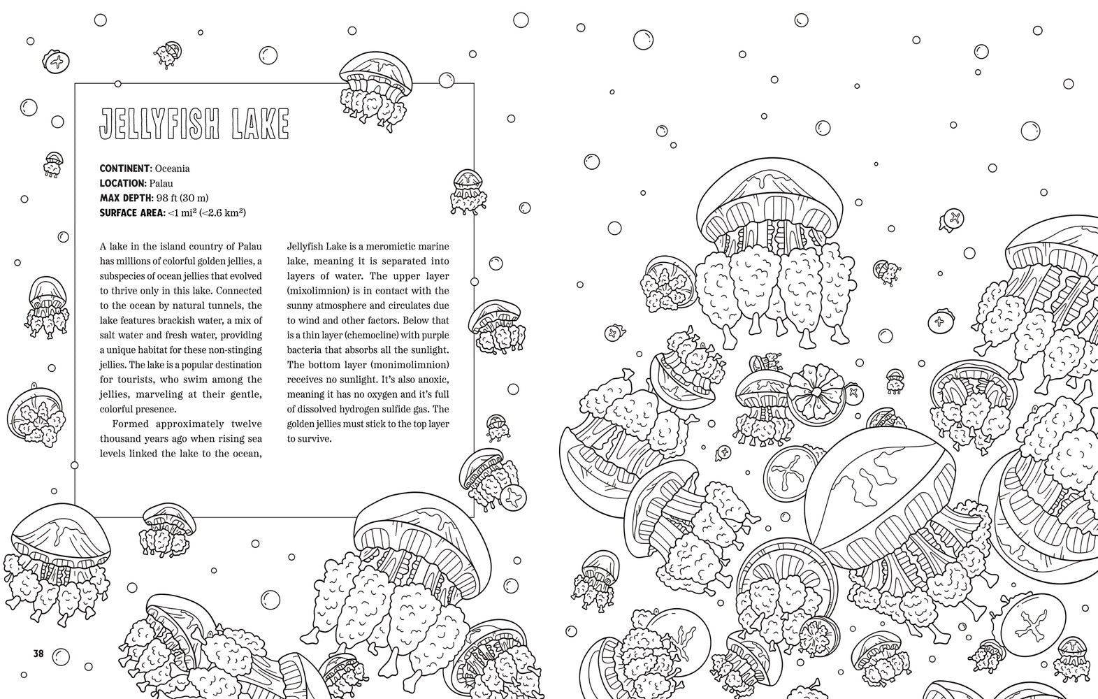 Explore weird and wild waters around the world—if you dare—in this coloring book from TikTok star and educator Geo Rutherford, creator of the New York Times bestselling book Spooky Lakes Dive into the science of hydrology and uncover the mystery of what lies beneath the surface of 35 lakes found around the world. Spooky Lakes Coloring Book features 25 black-and-white drawings based on the New York Times bestselling book, and 10 all-new drawings of lakes to discover. Whether you’re coloring for pleasure or delving into the strange phenomena of Earth’s most mysterious waters, this book is a must-have for spooky lovers of all ages.