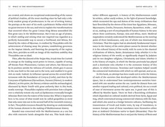 The Mediterranean has been the meeting-place of the cultures of Europe, Asia and Africa, the battleground of races and nations and the focus of three great religions, Christianity, Judaism and Islam.