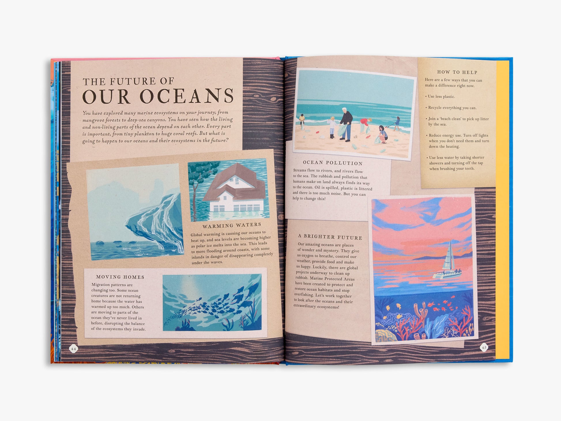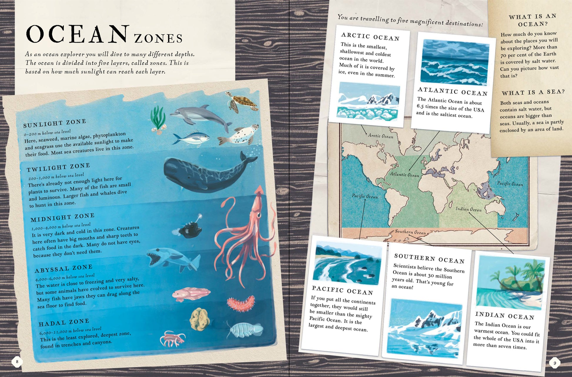 Using clever die-cuts and gatefold pages, the book explains how oceans form, the difference between a sea and an ocean, water zones, tides and currents, and reveals some truly astonishing species, from sea squirts and killer whales to the telescope octopus.