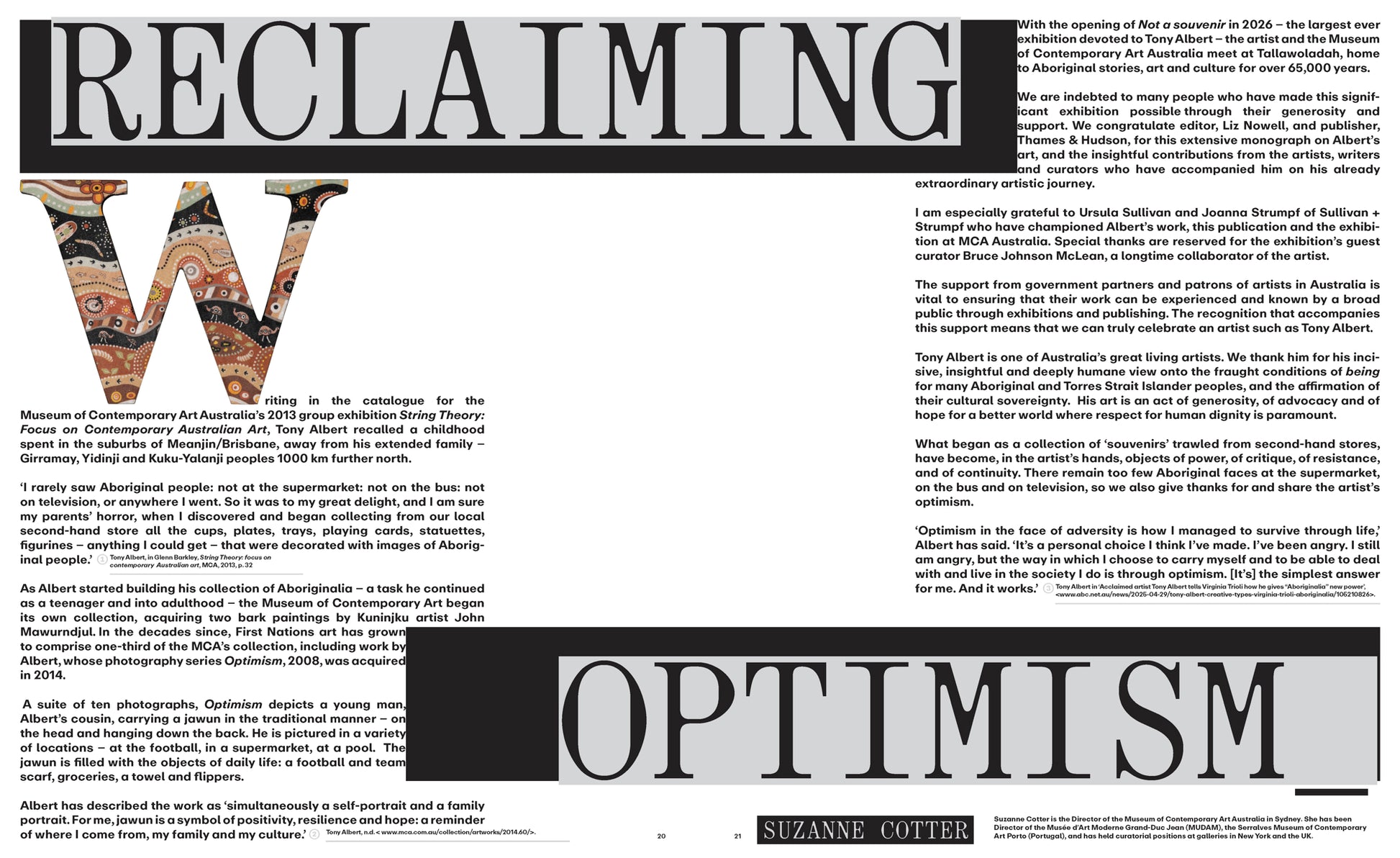 Tony Albert: Not a Souvenir is the most comprehensive publication on the artist to date, tracing his journey as one of Australia's most incisive contemporary voices. Across themes of past, present and future, the book unpacks the many critical questions raised in Albert's work: how do we remember, give justice to and rewrite complex and traumatic histories?