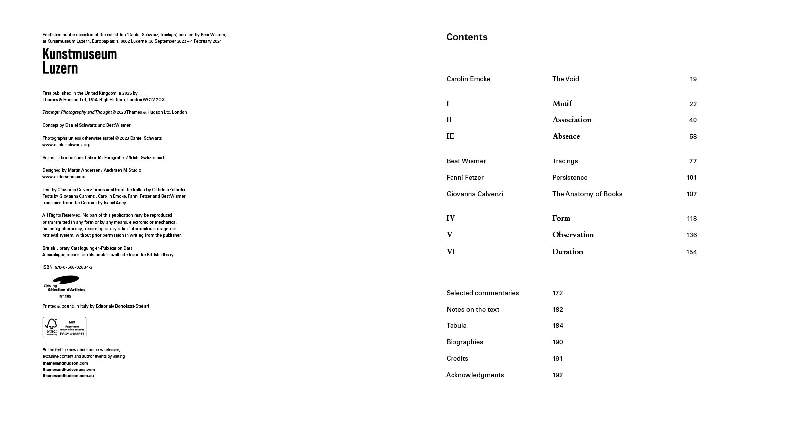 Positioning Schwartz's work to date in the wider history of the medium, Tracings draws together themes tackled in five monographs concerned with cultural history, political geography and the environment published by Thames & Hudson between 1986 and 2017. Essays by Beat Wismer, Giovanna Calvenzi and Carolin Emcke examine the ways Schwartz's documentary photography intersects with the arts; look at photographic affinities and methods in Schwartz's work, analysing the narrative of his previous books; and study Schwartz's depiction of the individual at work, and how photographs of human activities are interwoven with photographs of nature.