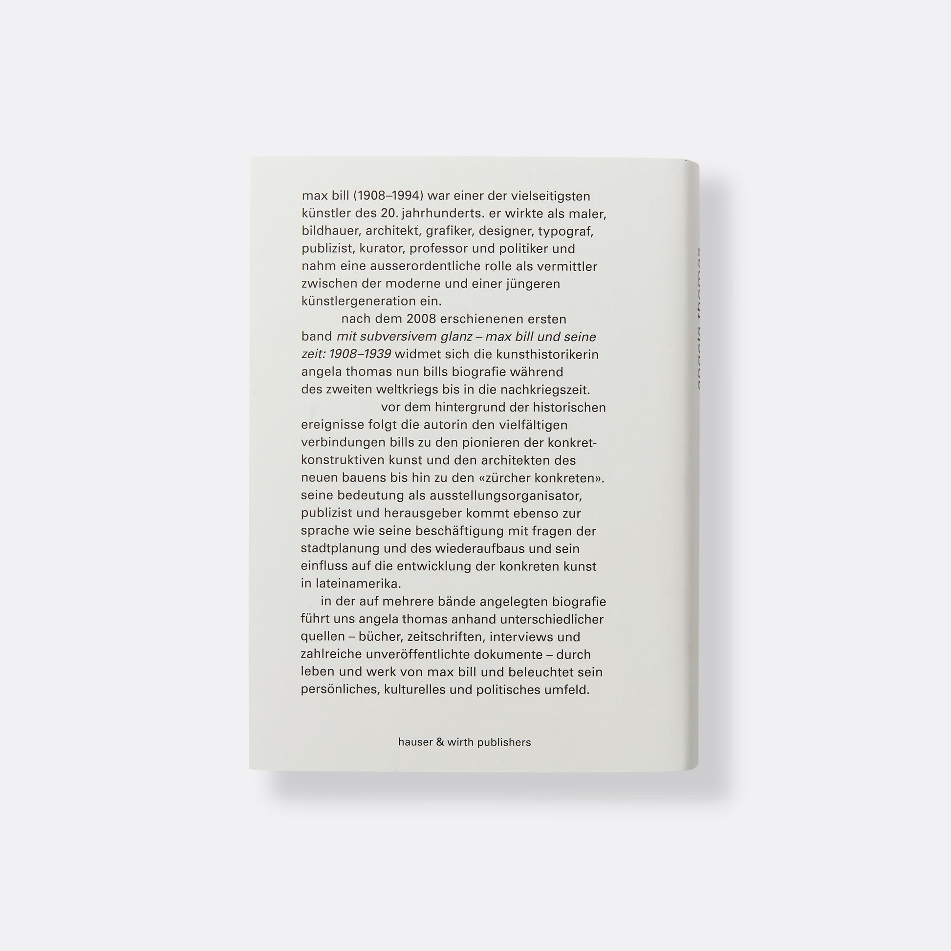 The second installment of art historian Dr. Angela Thomas' German-language, multi-volume biography of her husband Max Bill, providing a highly unconventional and intimate account of the Swiss polymath's life and work during World War II and the postwar period.