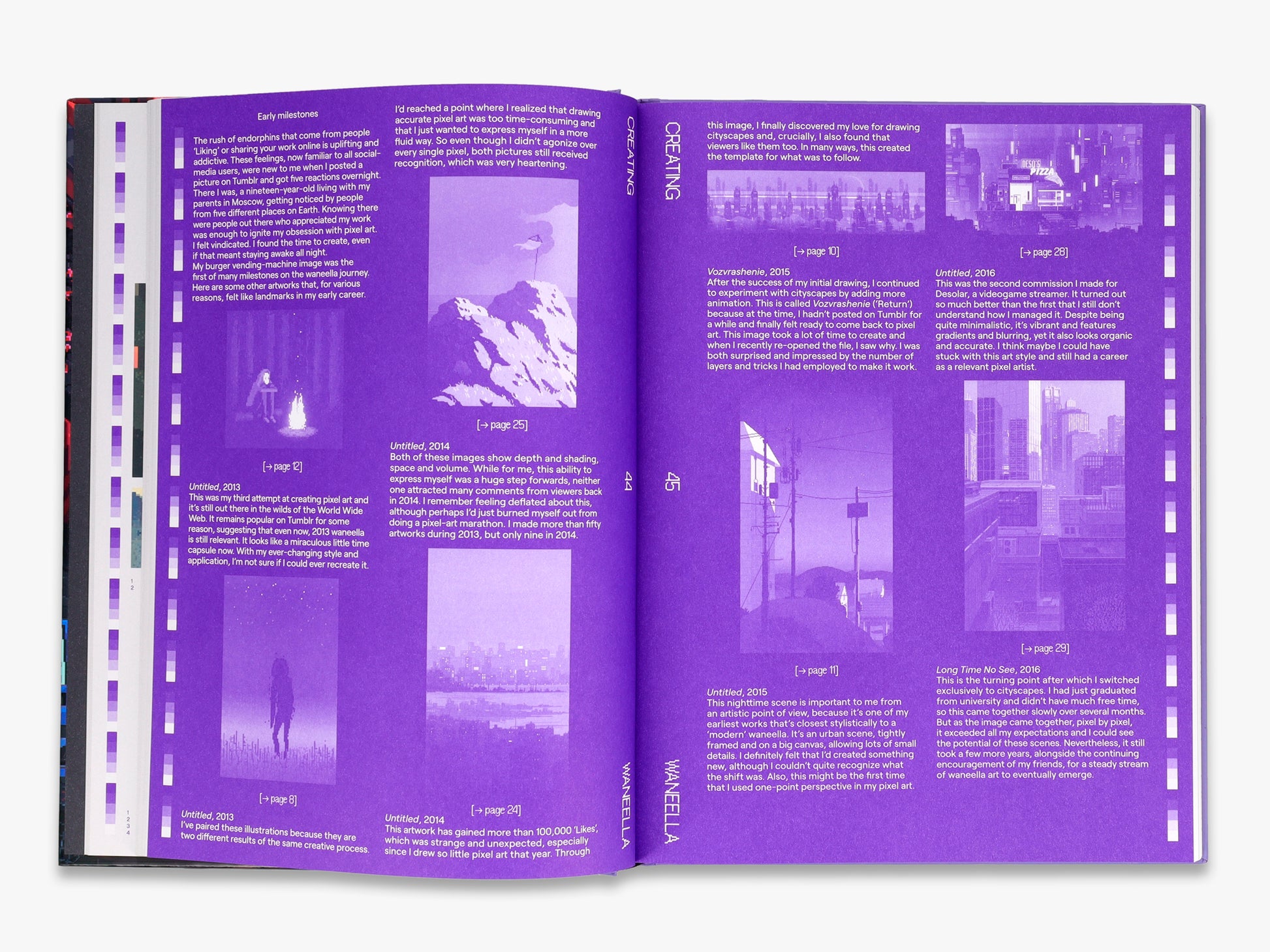 This compelling monograph documents Waneella's journey from novice pixel-pusher to world-renowned artist, indisputably the leading name in this new reinvention of the once-retro pixel-art aesthetic. The book takes us from her early experiments with the pixel art form creating pseudo-videogame visuals, through to the years where her unique style crystallized, fusing sci-fi-tinged architecture, cinematic hints of narrative, and masterful deployment of light sources and shadow.