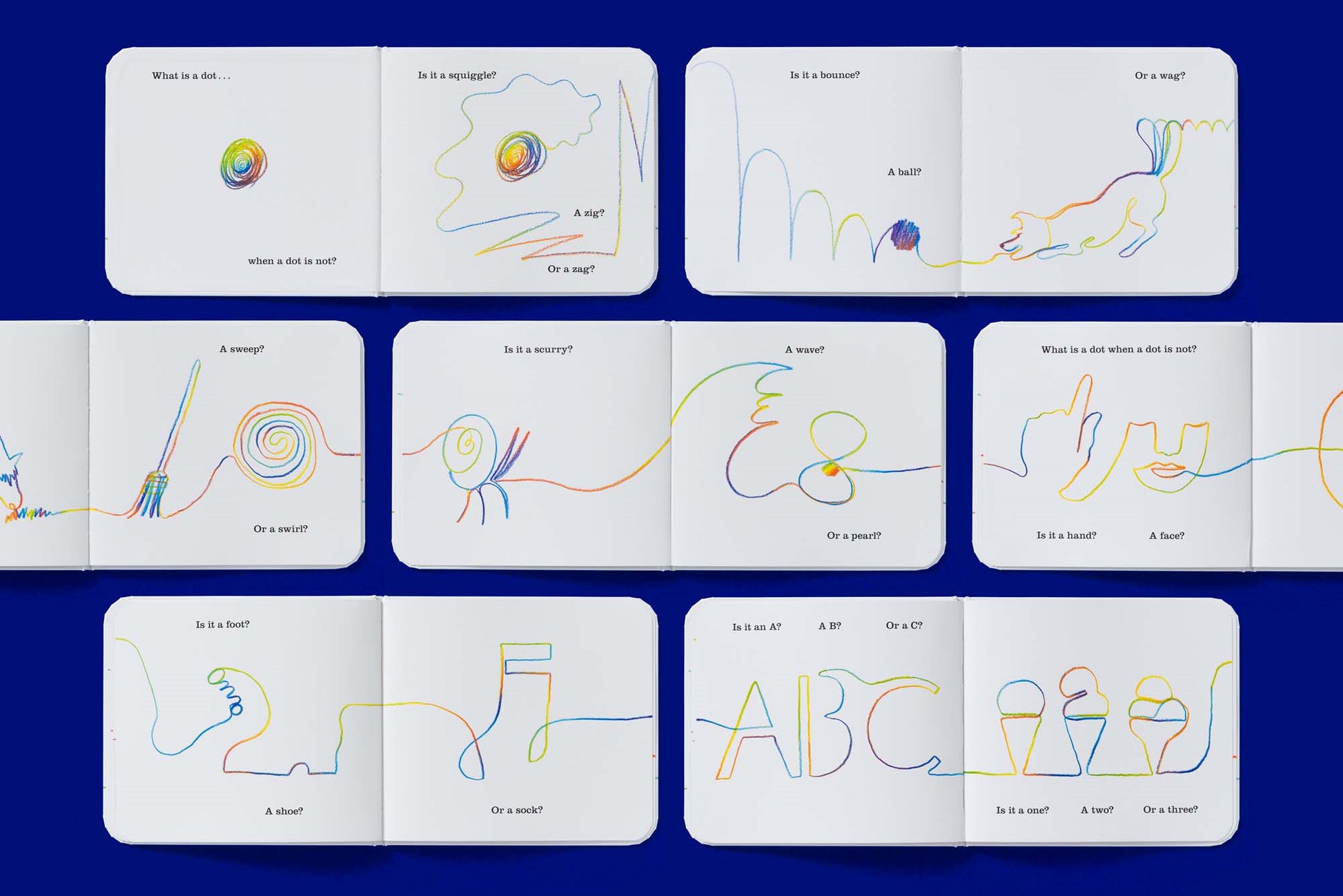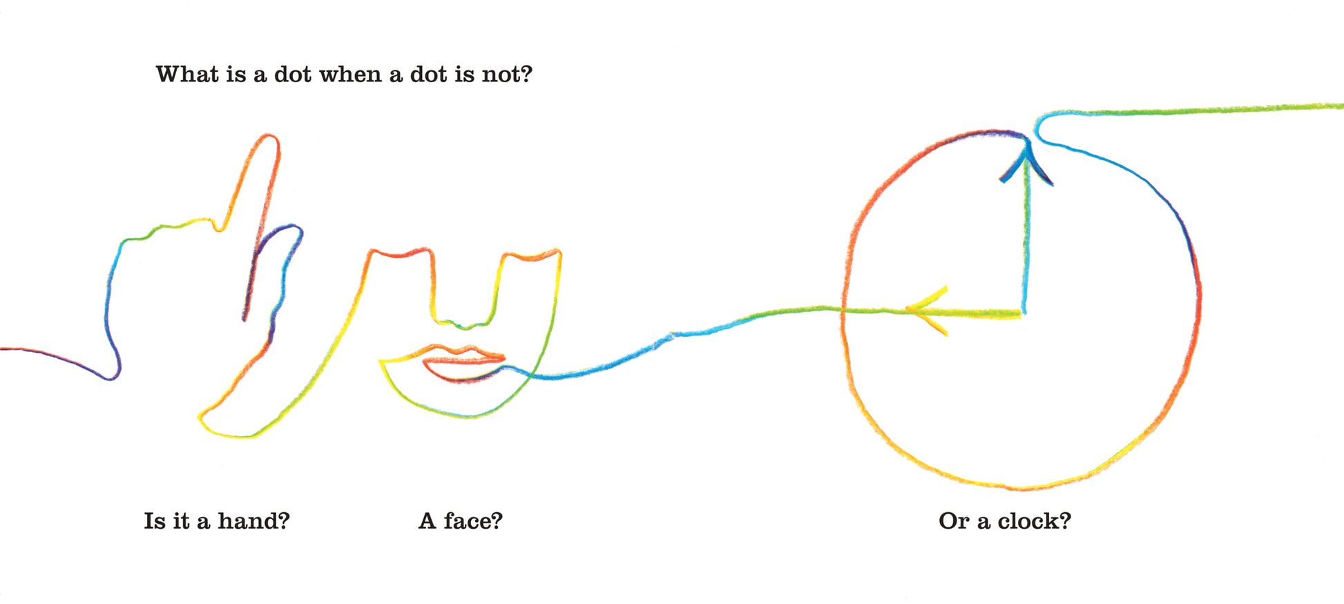 Inspired by Paul Klee's quote, 'a line is a dot that went for a walk', What is a Dot? celebrates the joy of mark-making and the creative play that results when we let our imaginations and our pencils roam.