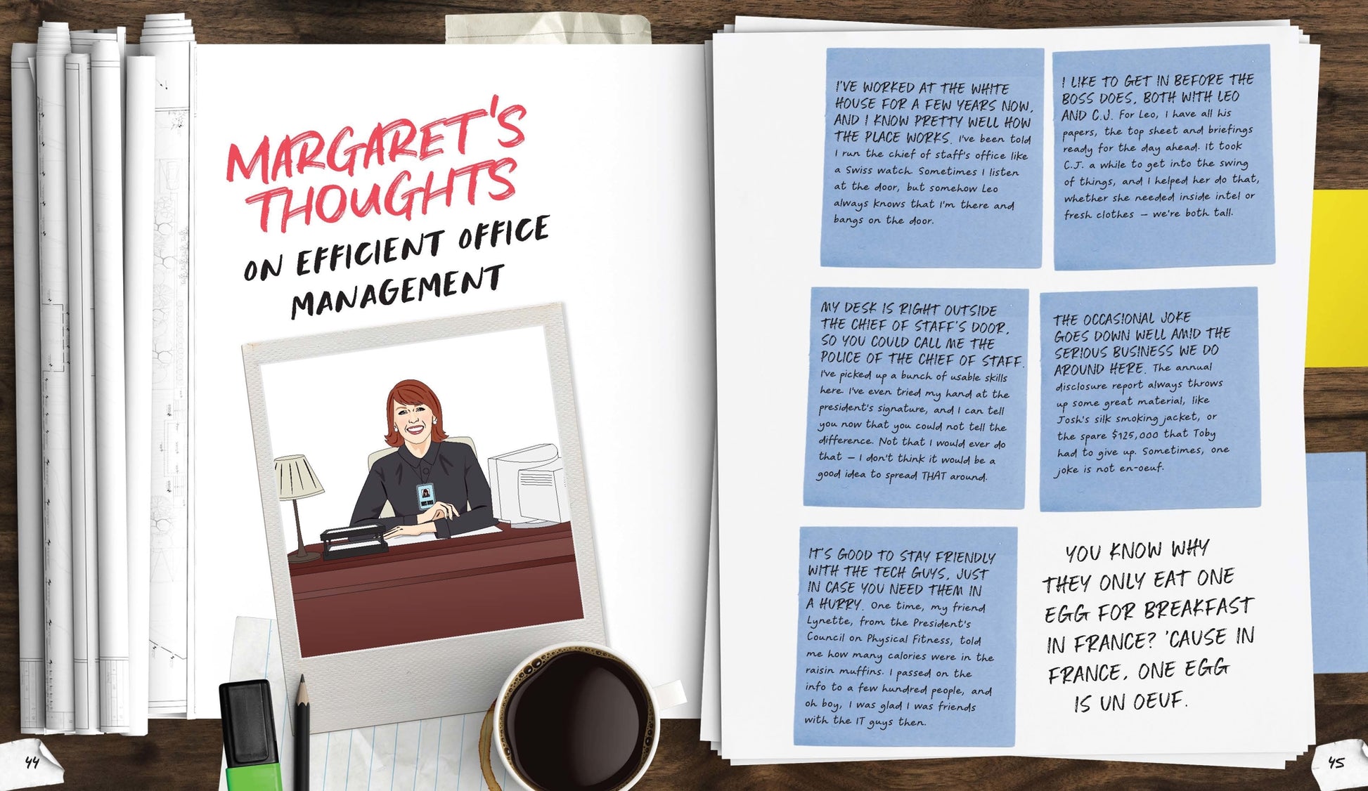 What’s Next? is the ultimate companion guide for any fan of The West Wing. Take the ‘Which West Wing Staffer are you?’ quiz to find out if you’re more a C.J. or a Charlie. Help Leo review Big Block of Cheese proposals, and make sure you know your POTUS from your FLOTUS by brushing up on your terminology.