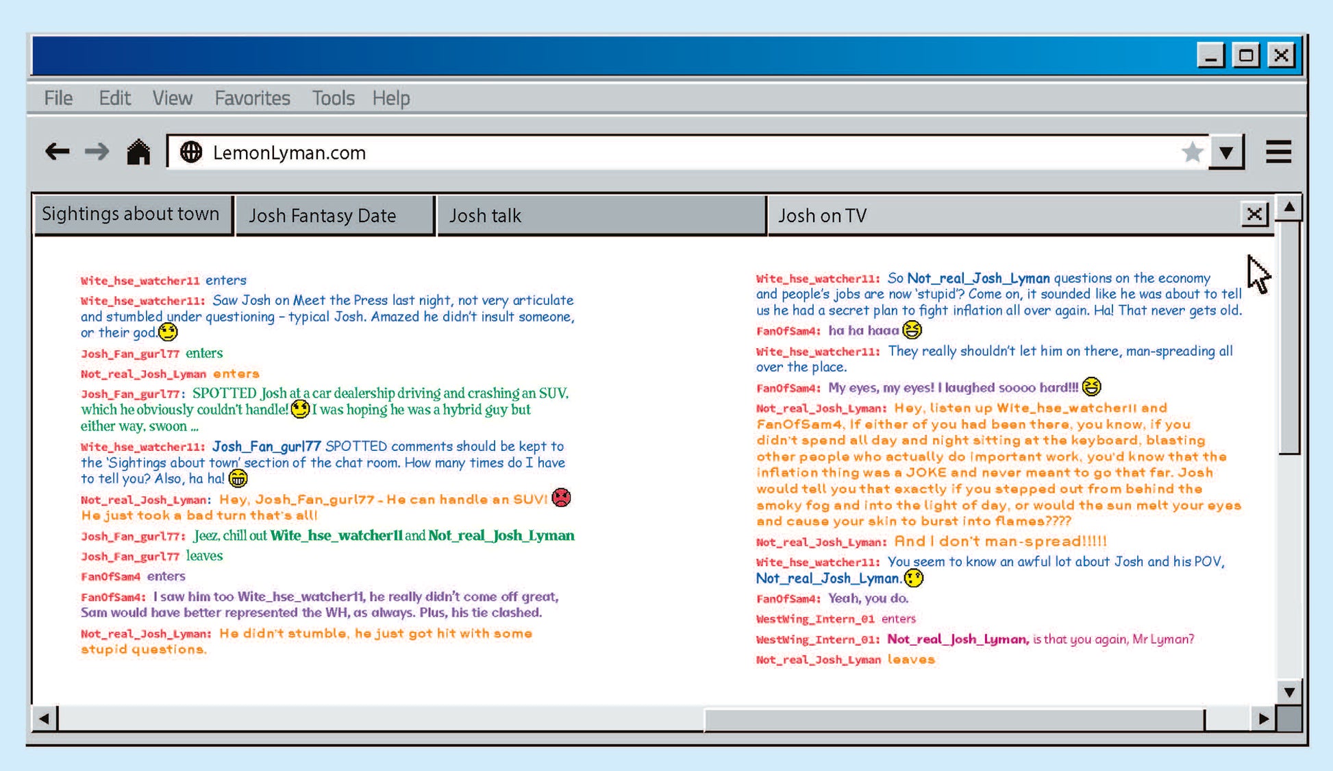 Find the recipe for the finest muffins in all the land while hitting up Lemonlyman.com to see who’s been out and about. With season guides, top episodes, staff profiles and more, What’s Next? contains all you ever wanted to know about President Bartlet’s White House.