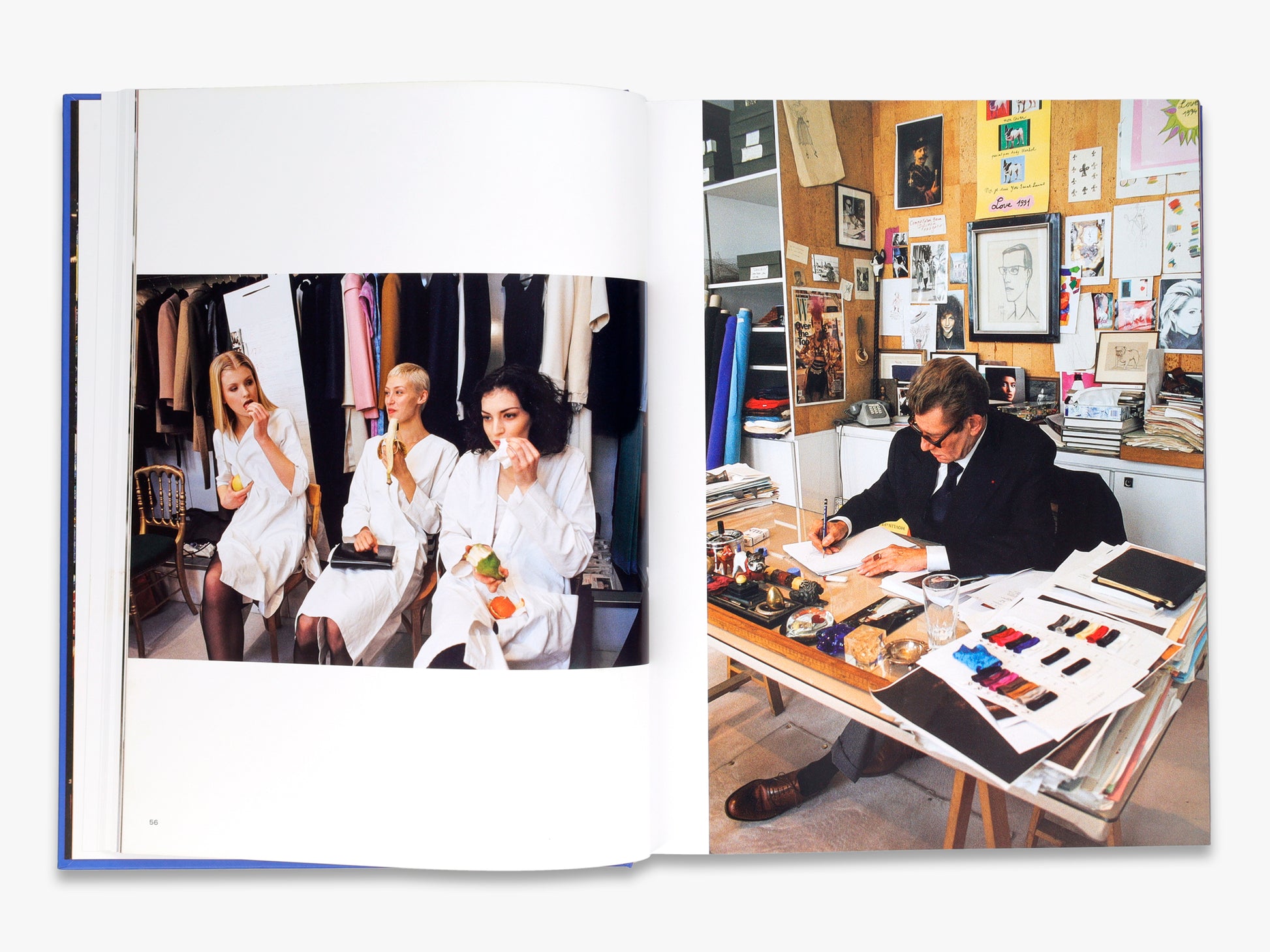 The book offers a comprehensive and multi-faceted exploration of the life of an haute couture house: from informal, atmospheric portraits of Yves Saint Laurent at work in his studio, drawing and creating, to the behind-the-scenes work of the 'petites mains' in the ateliers, the skilled army of artisans whose activity is rarely documented. The house's world-famous models also feature, captured during pre-collection fittings in the house's grandiose salons and in electric backstage moments before the shows.